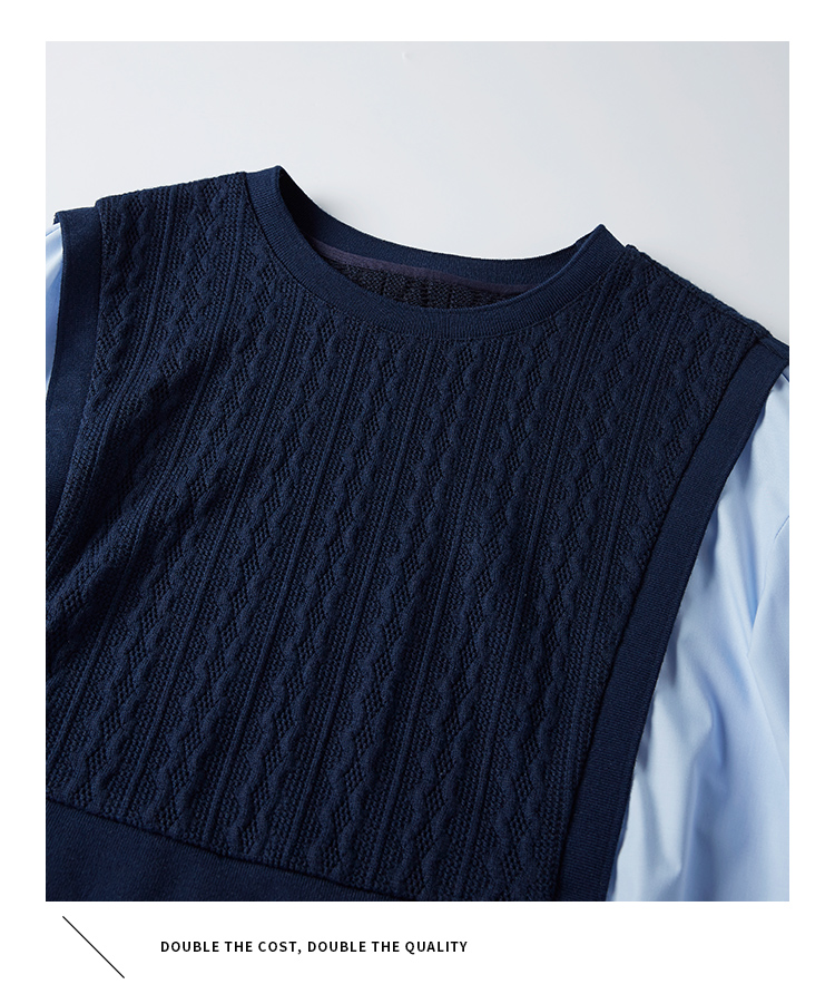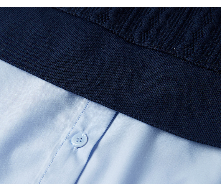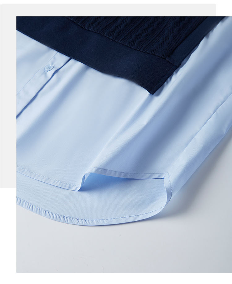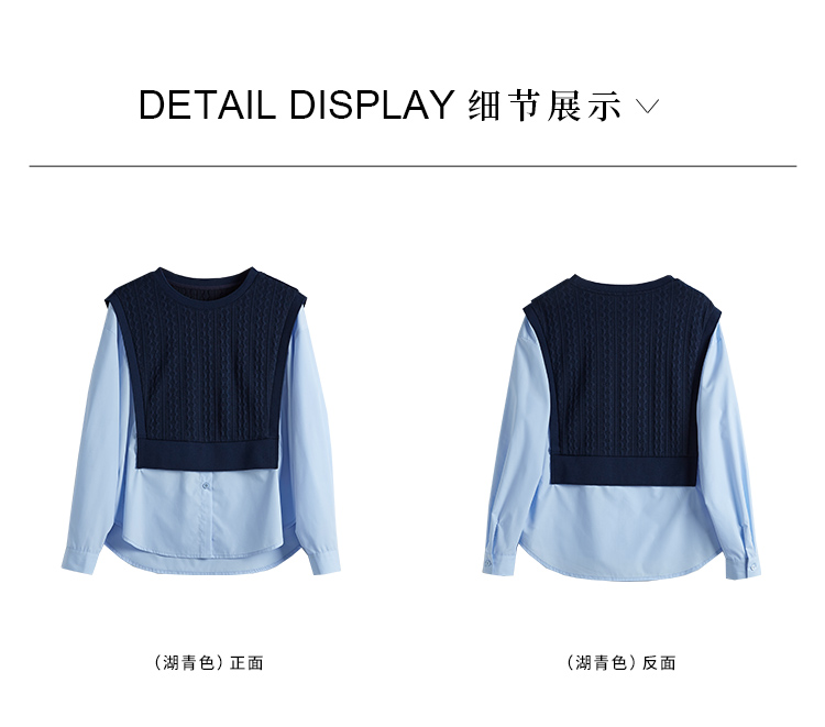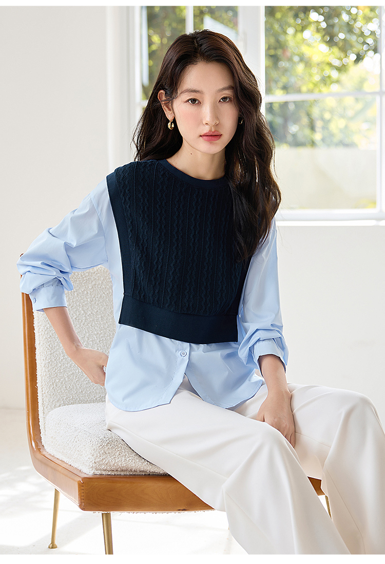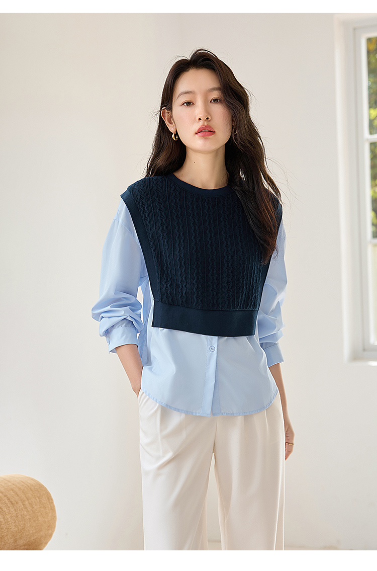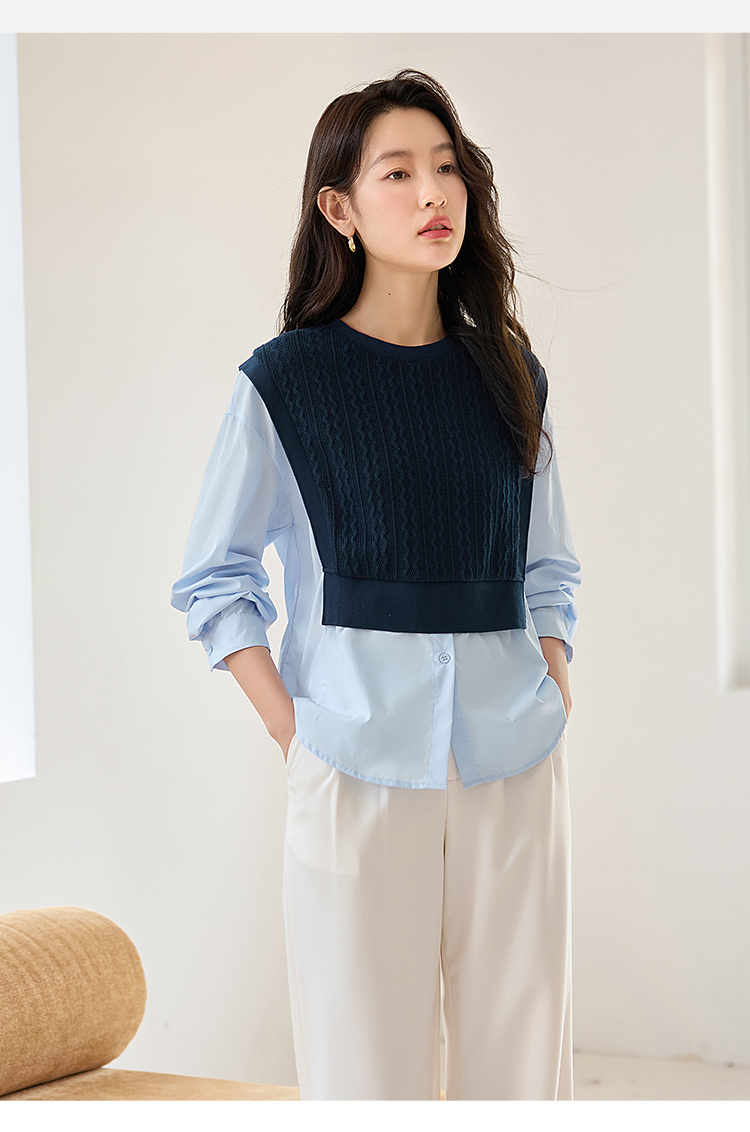 【年终特卖】熙世界2025秋季新款学院风针织上衣拼接衬衫气质显瘦假两件卫衣