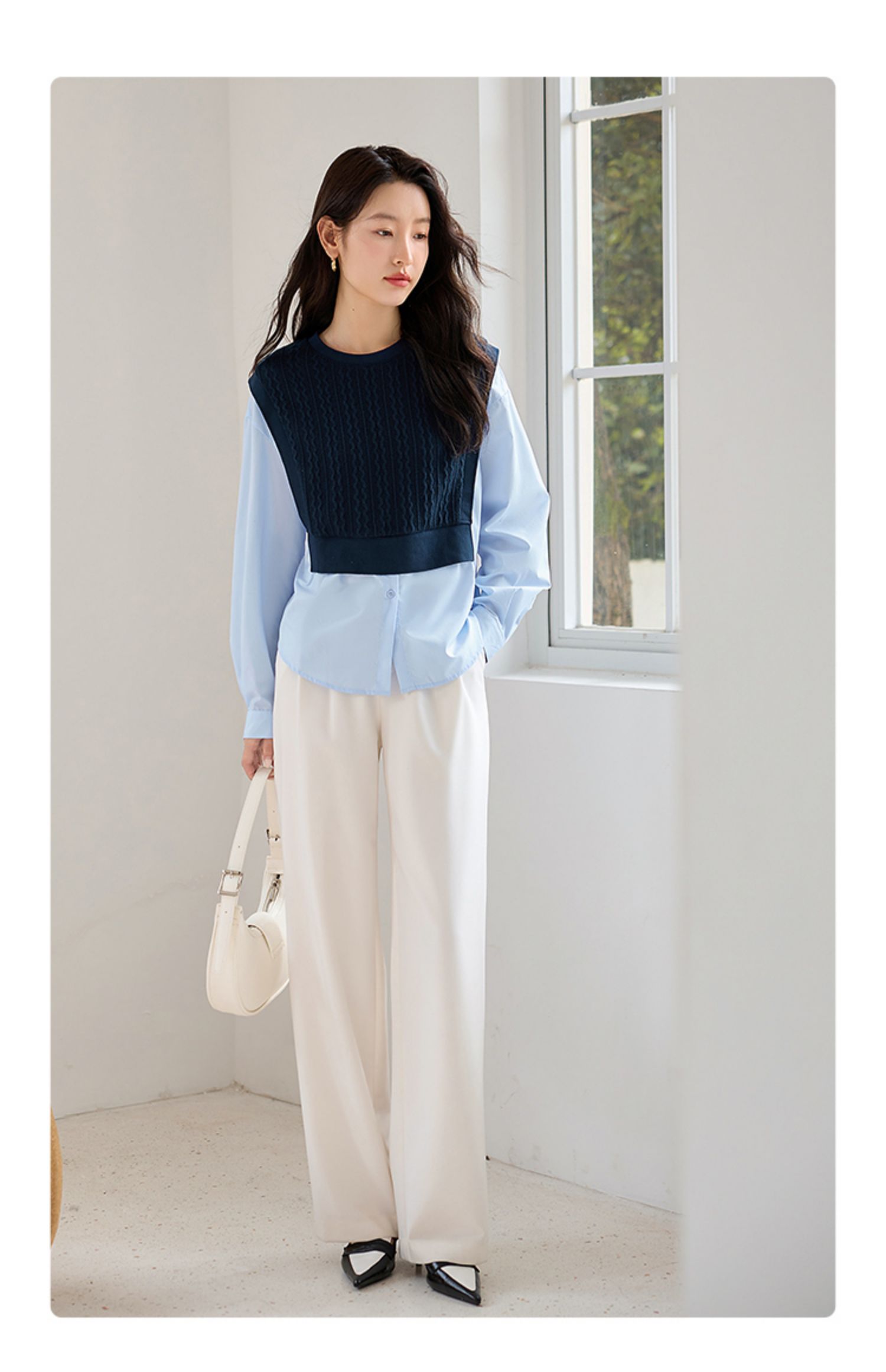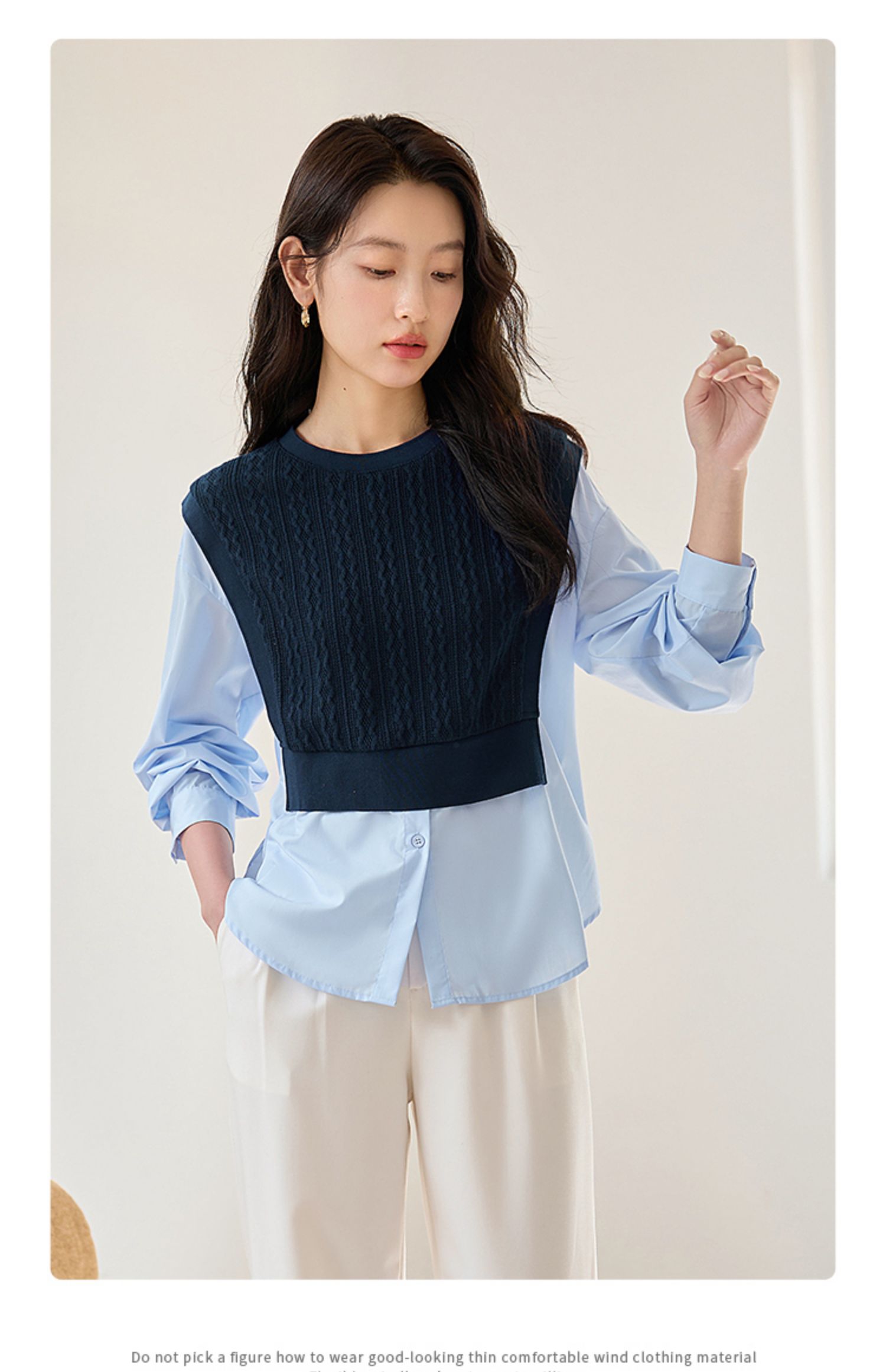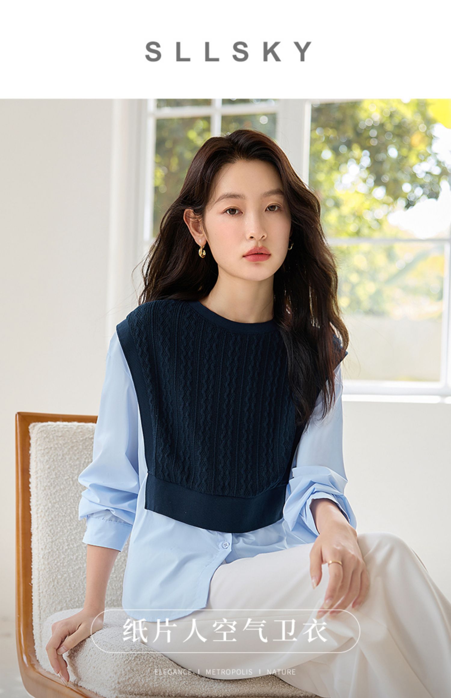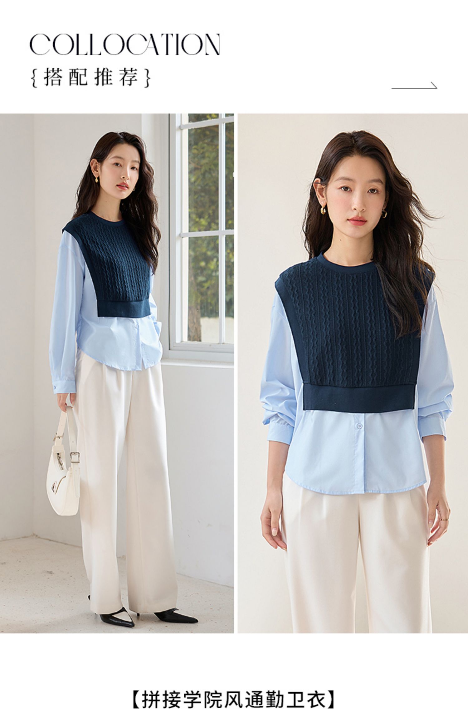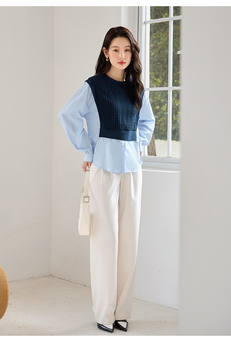 【年终特卖】熙世界2025秋季新款学院风针织上衣拼接衬衫气质显瘦假两件卫衣