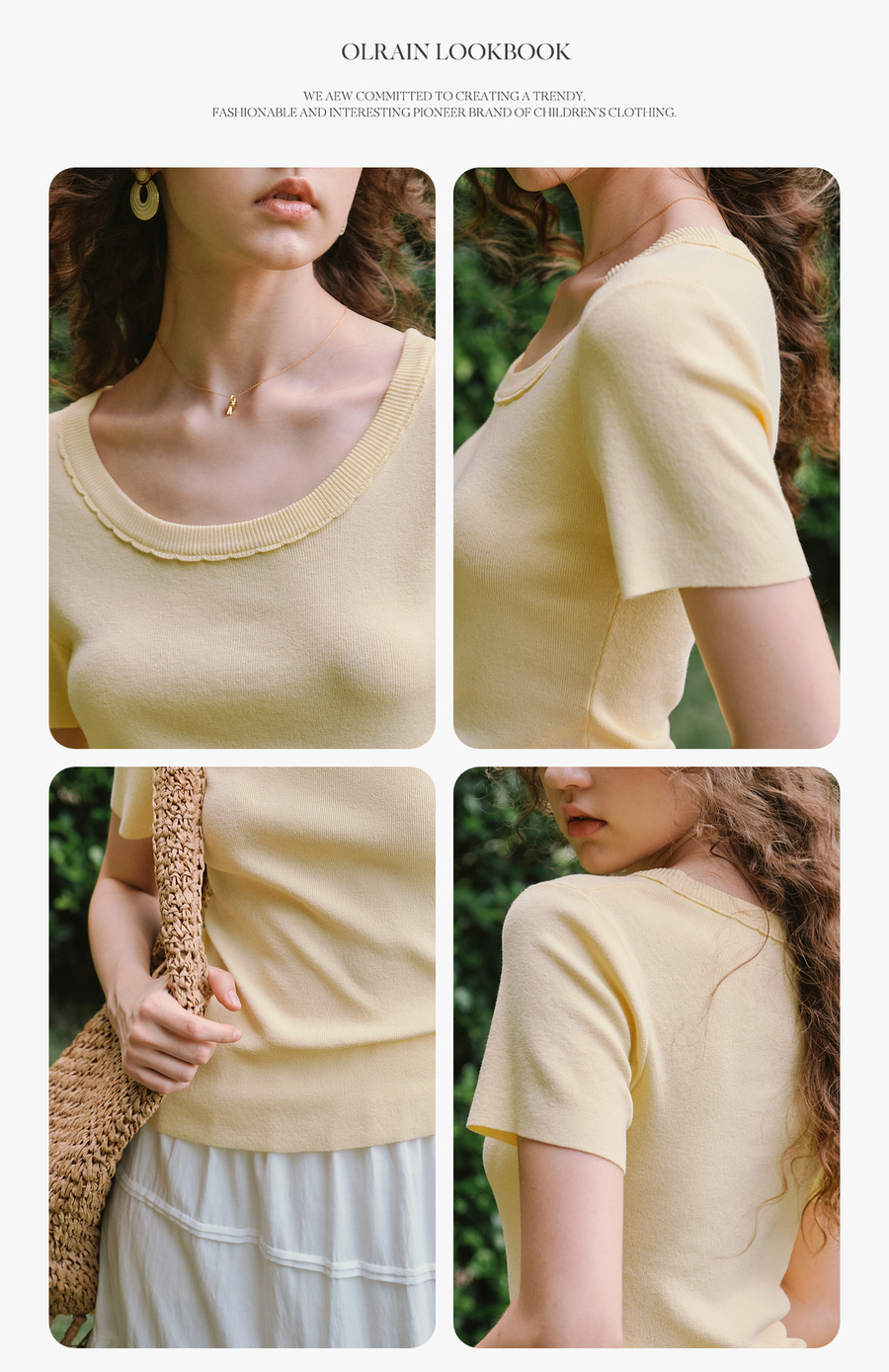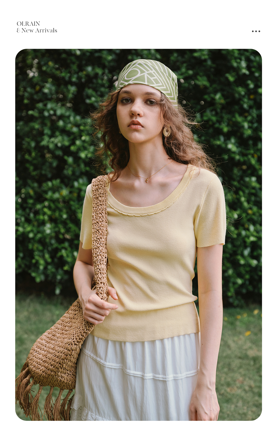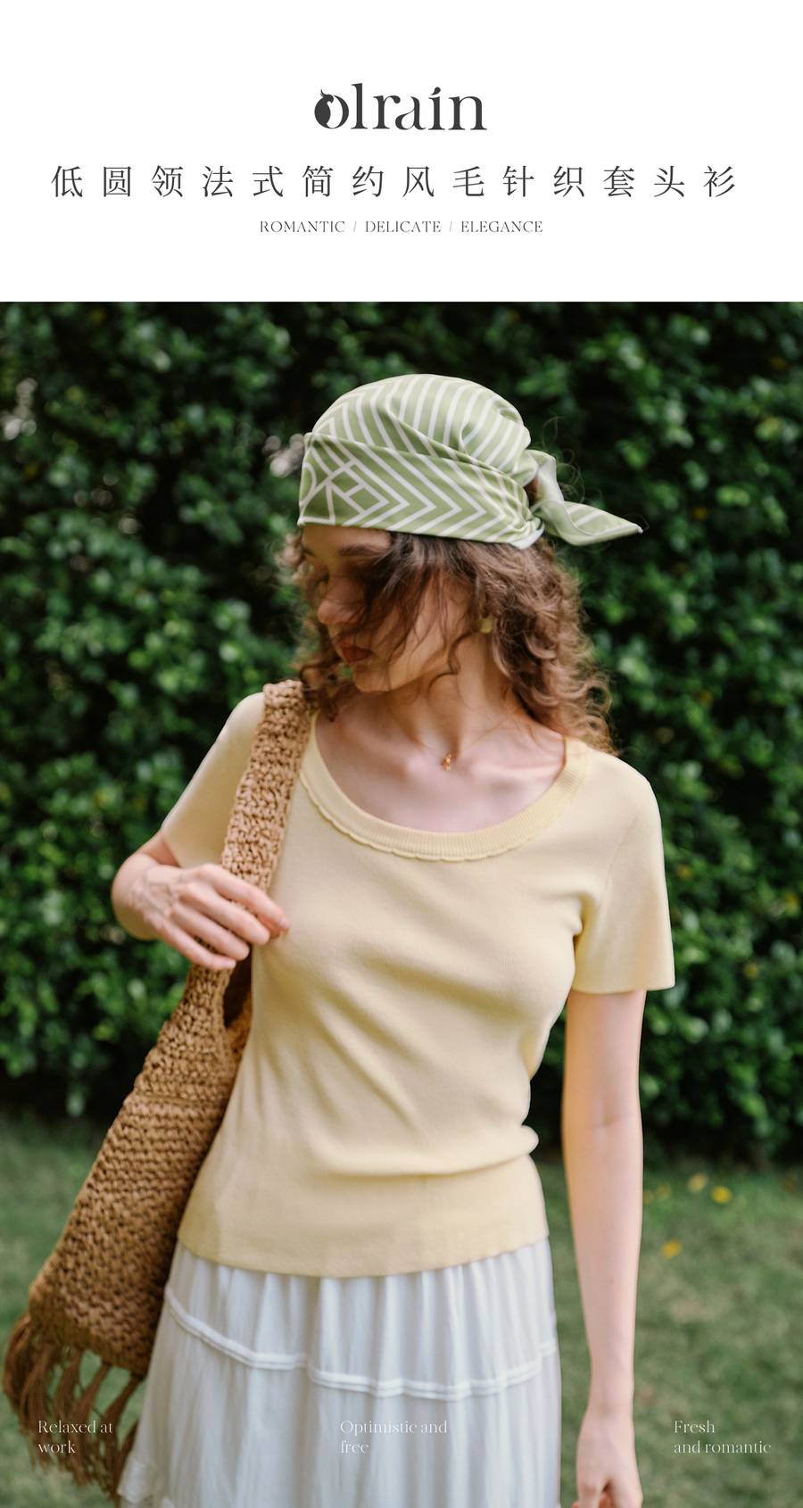 OLrain欧芮儿法式简约风毛针织套头衫女夏季2025年新款低圆领上衣