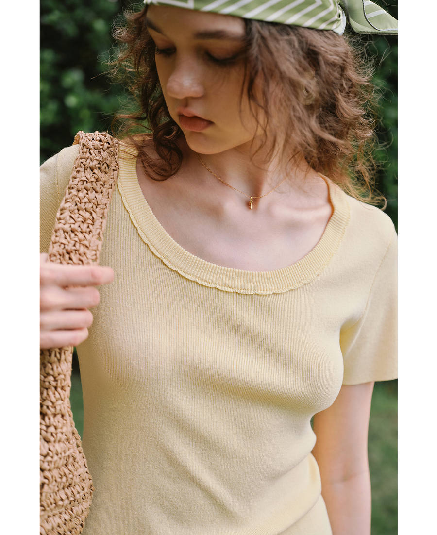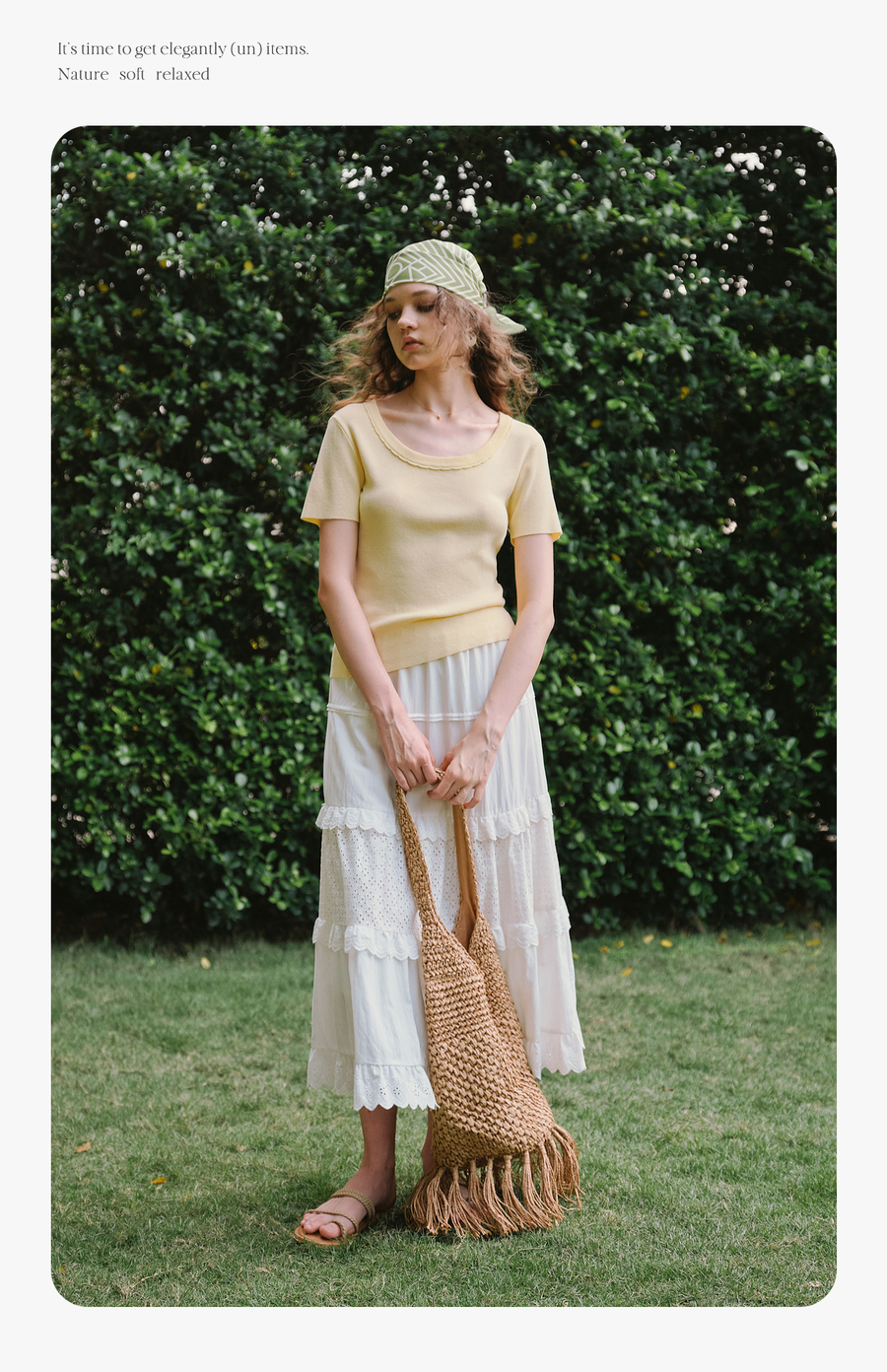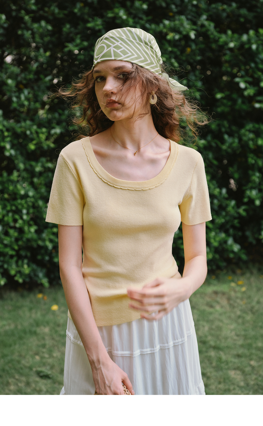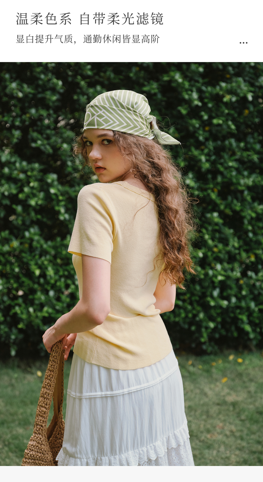 OLrain欧芮儿法式简约风毛针织套头衫女夏季2025年新款低圆领上衣