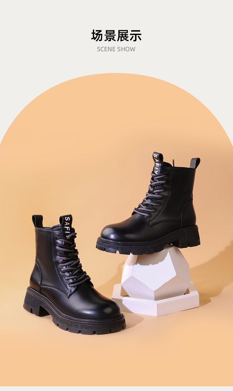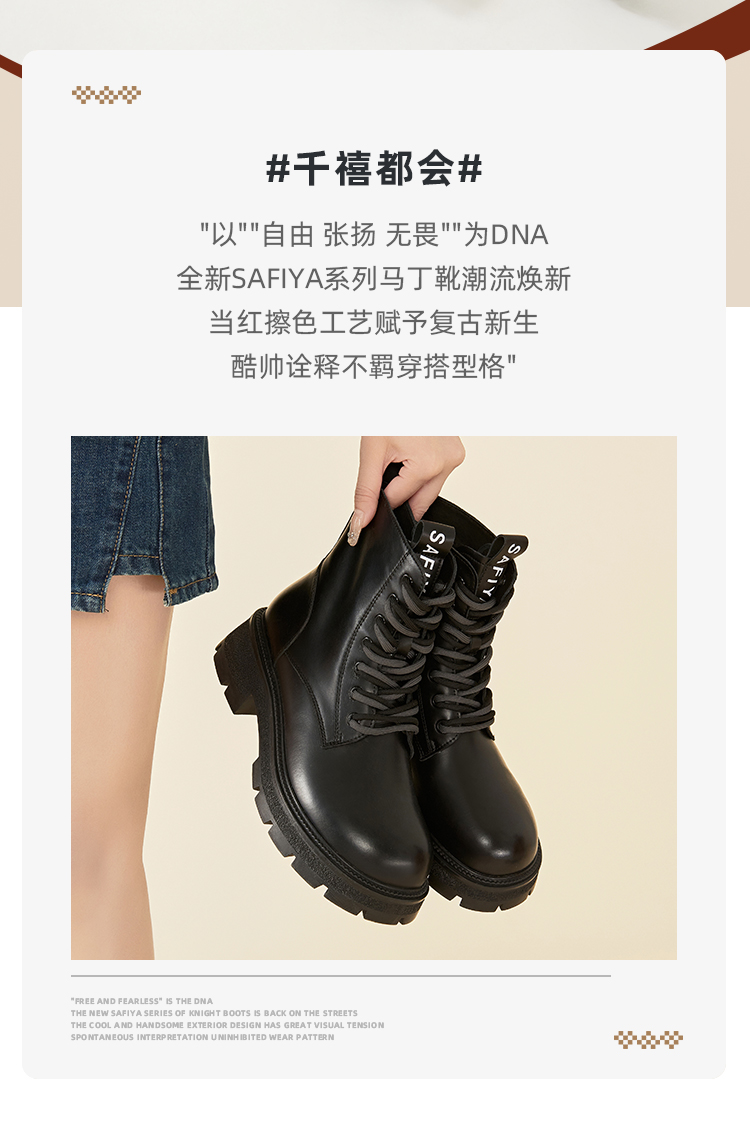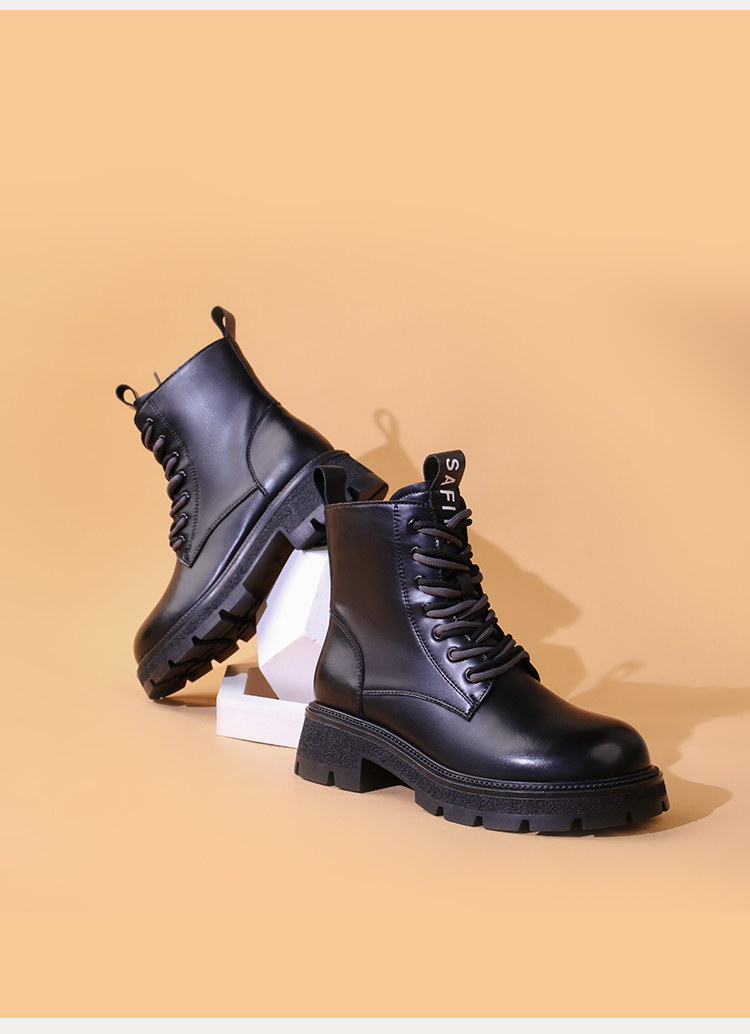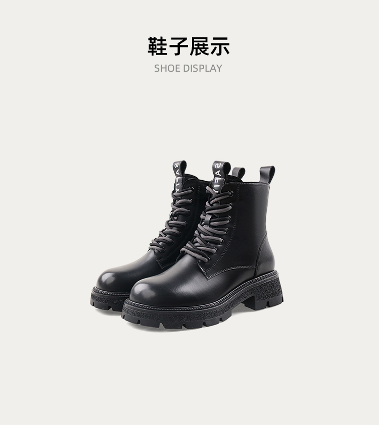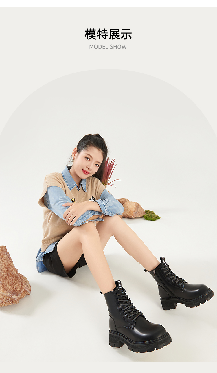 Safiya/索菲娅2023秋冬潮酷机车风百搭系带厚底英伦粗跟短靴 SF34116066/SF34118066