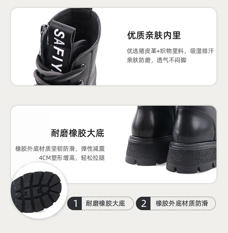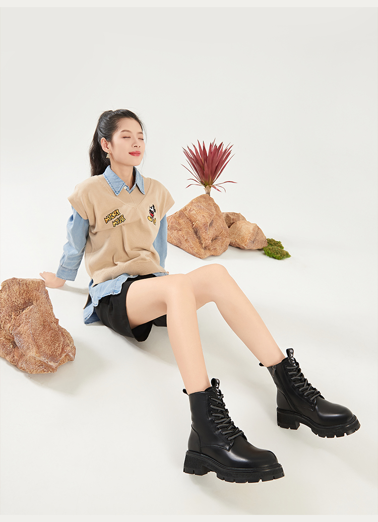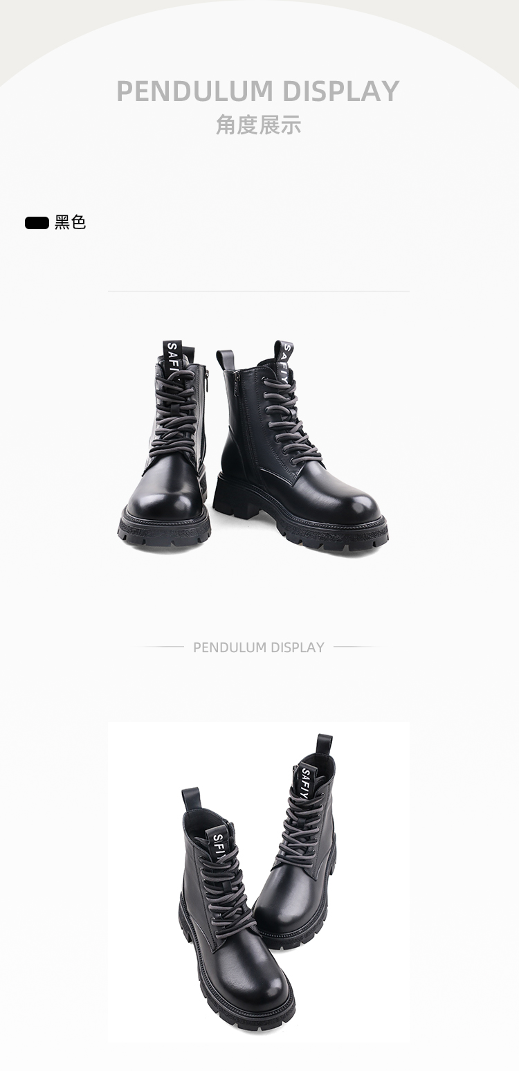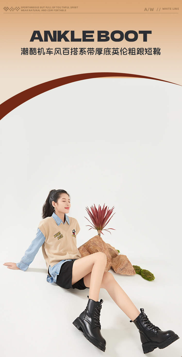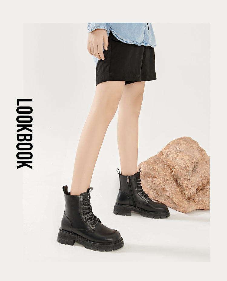 Safiya/索菲娅2023秋冬潮酷机车风百搭系带厚底英伦粗跟短靴 SF34116066/SF34118066