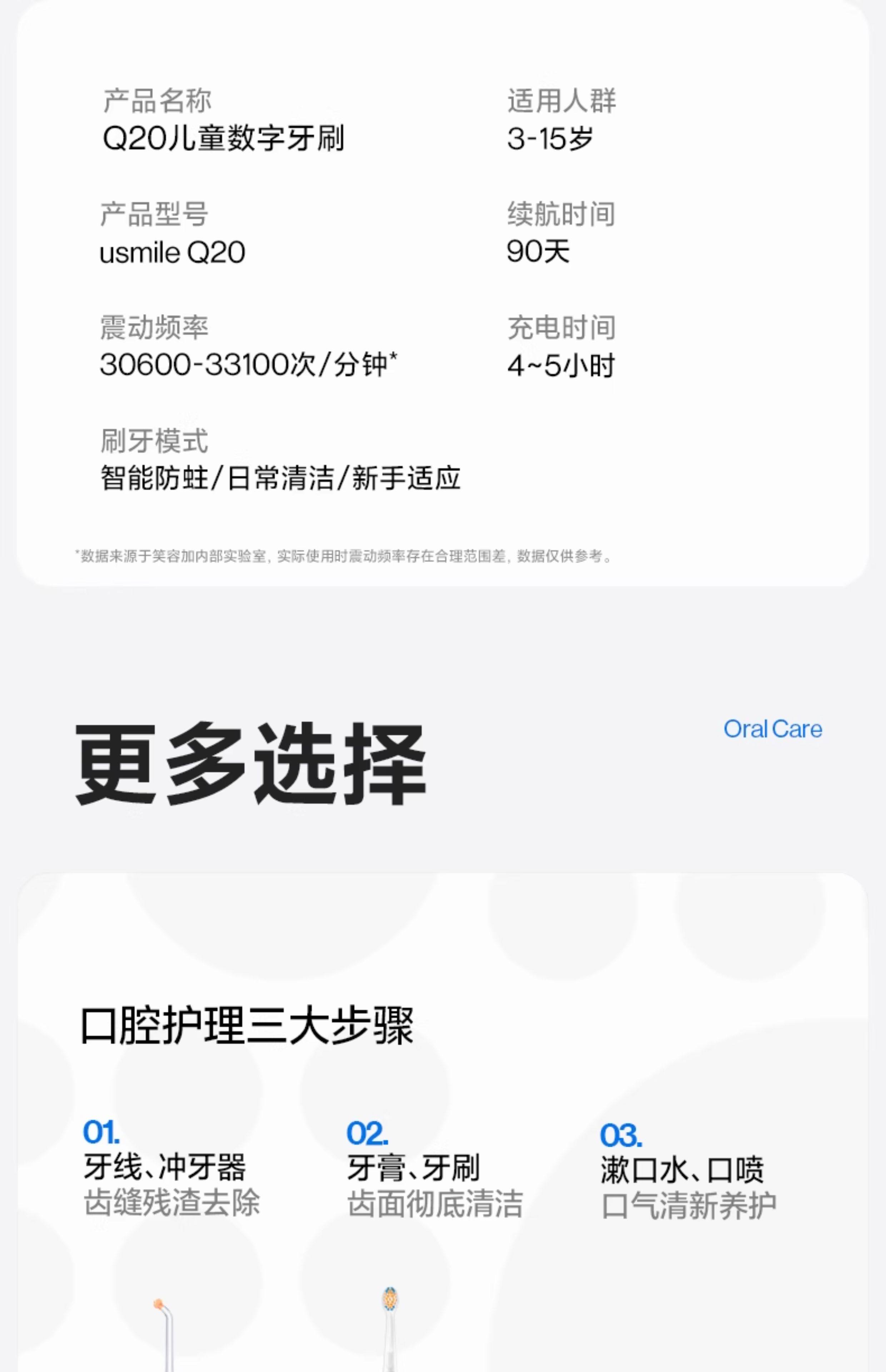 usmile笑容加 儿童数字牙刷Q20(流光紫)