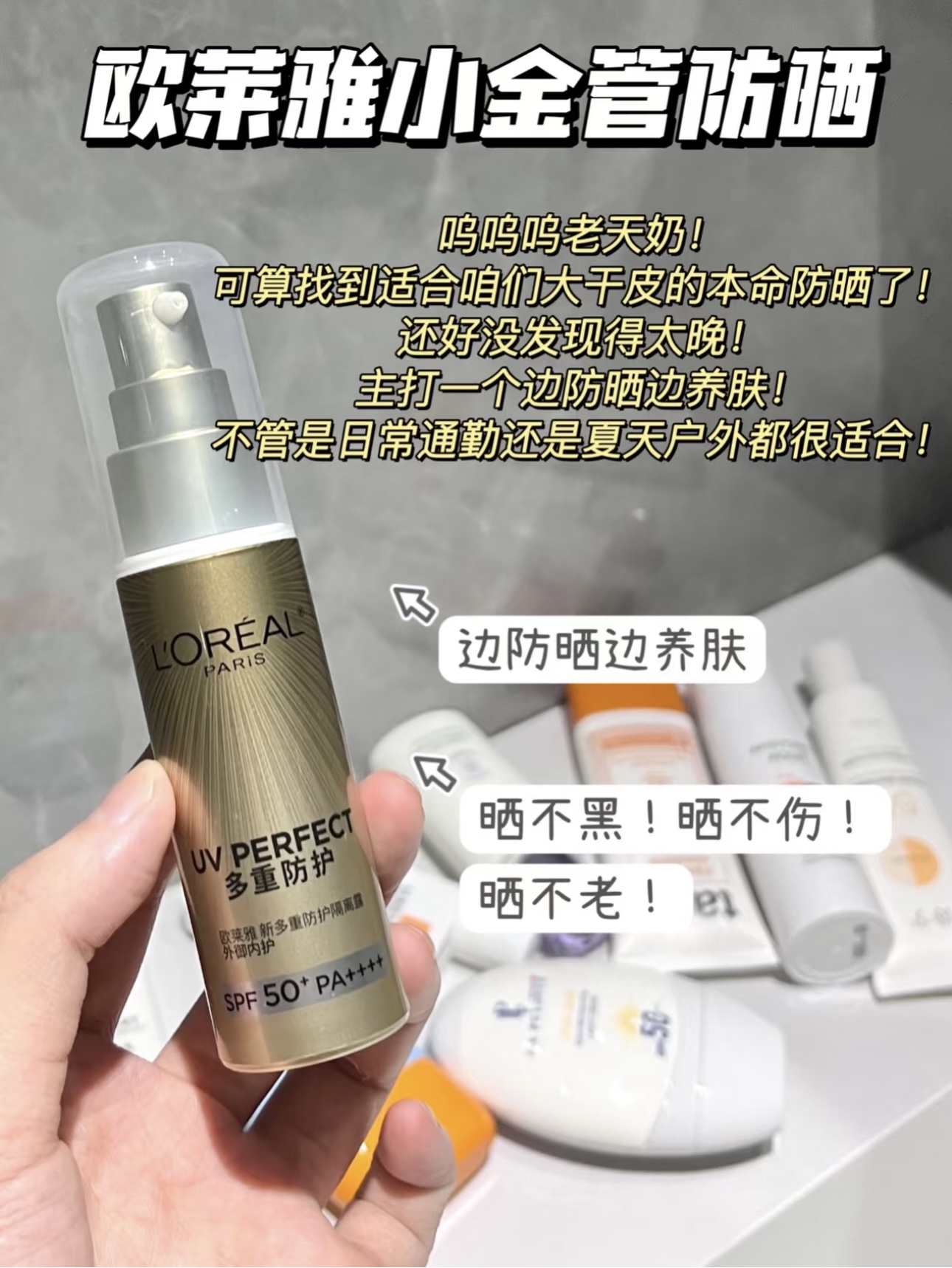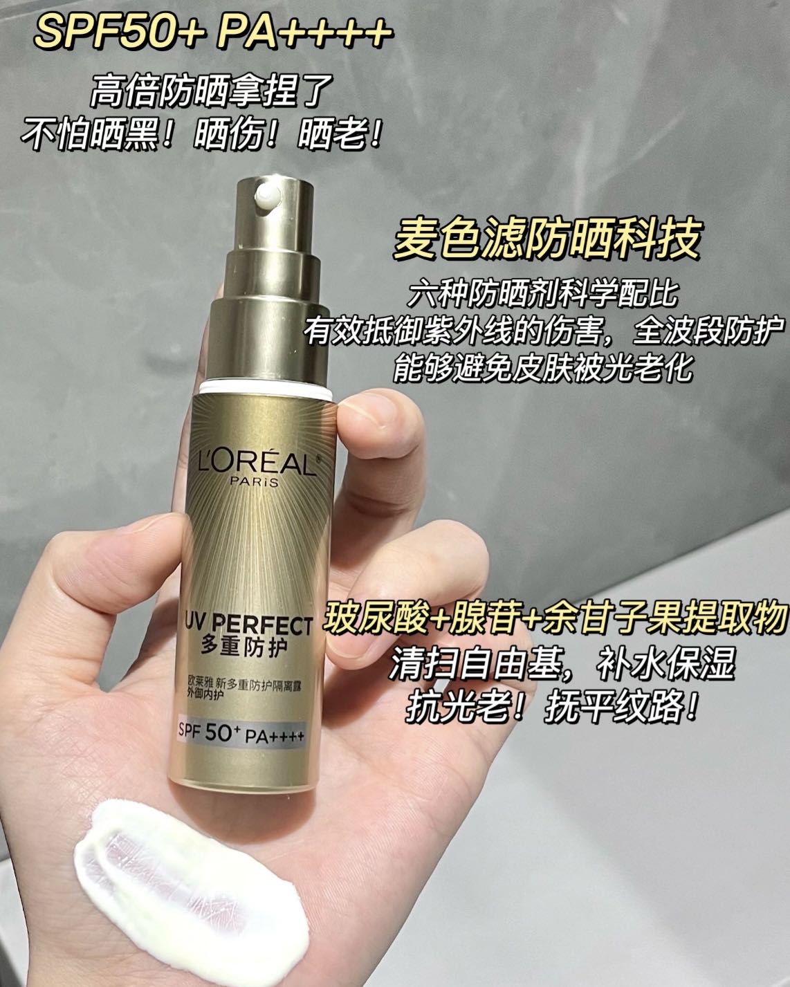 欧莱雅小金管防晒霜30ml, 面部清爽隔离防晒乳 ,脸部防晒乳防水防汗防紫外线SPF50+PA++++,上班通勤户外军训海边出游旅行必备!