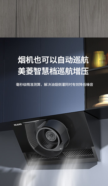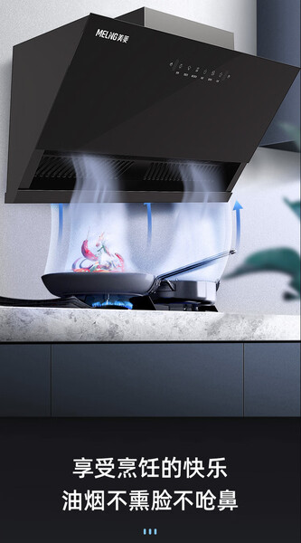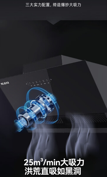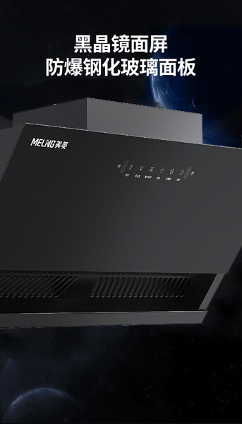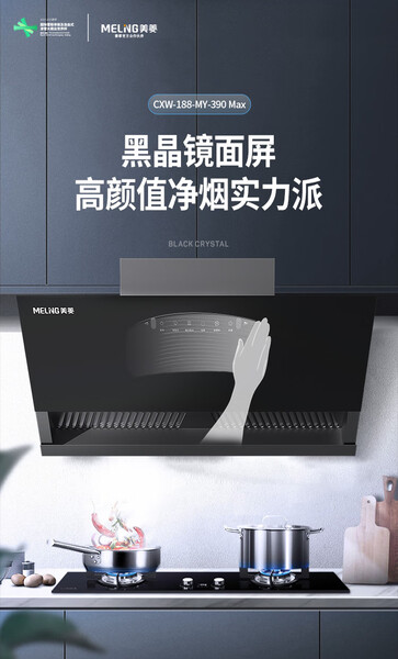 美菱 油烟机 CXW-188-MY-390 Max 25m3/min 一级能效 变频电机 侧吸 烟灶联动 合金喷涂+钢化玻璃