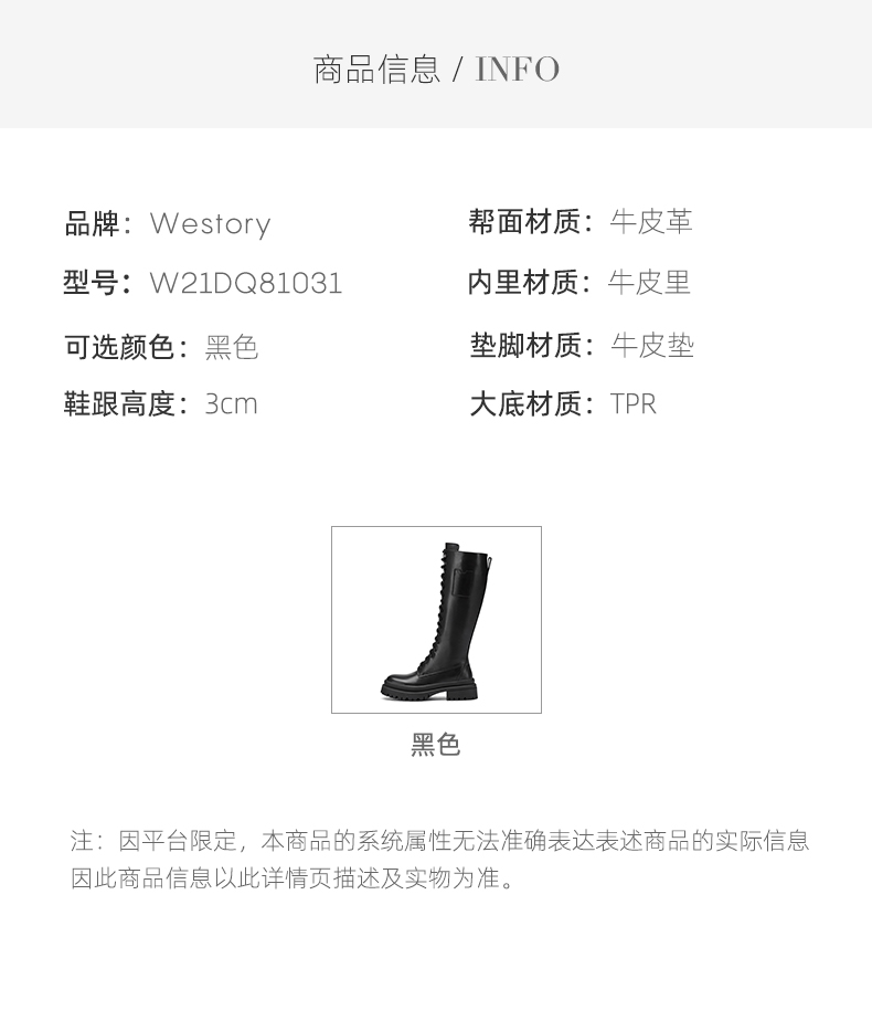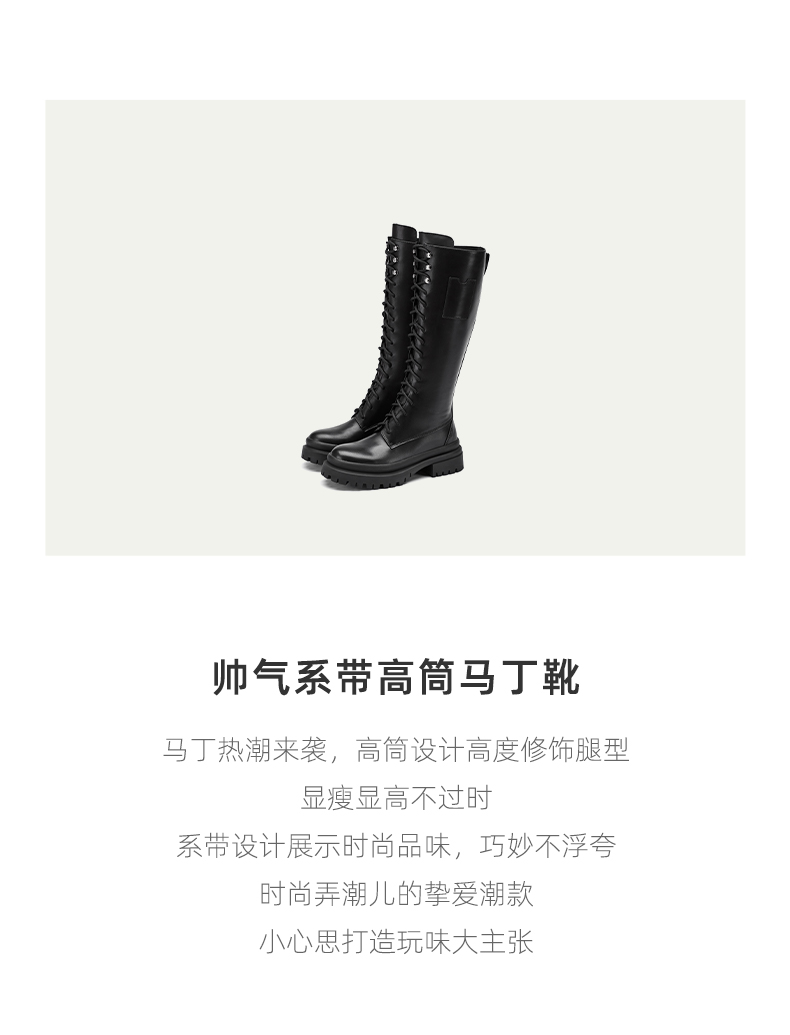 westory2021年秋季骑士靴女新款高筒平底炸街复古靴子W21DQ81031