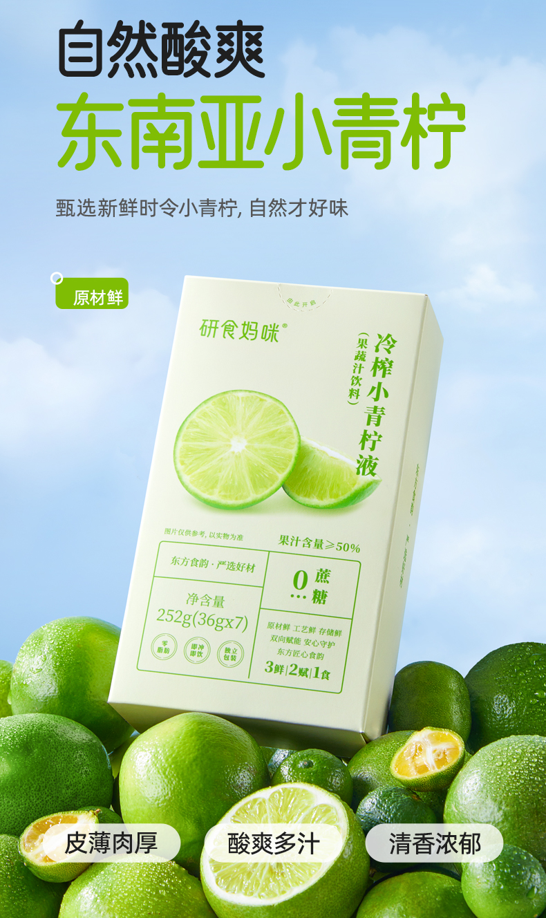 十月结晶研食妈咪冷萃小青柠液冷榨原液水果茶饮料青柠汁维VC冲饮