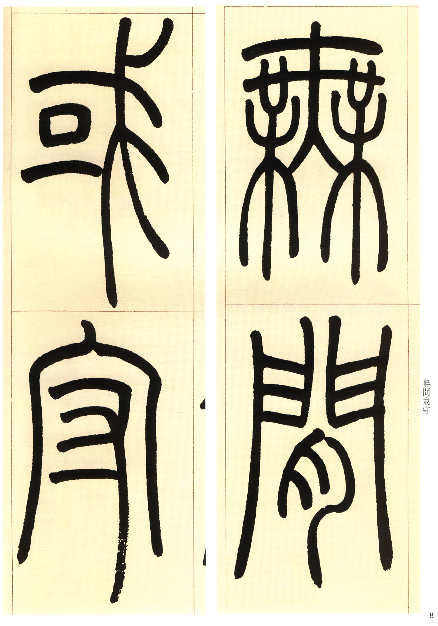 “名家篆书丛帖”收入清代中期及后期著名书家邓石如、吴让之、杨沂孙、徐三庚、何绍基、胡澍、赵之谦、吴大澂、吴昌硕等人的篆书作品,其中邓石如、吴让之各5件,赵之谦3件,徐三庚2件,杨沂孙、何绍基、胡澍、吴大澂、吴昌硕各1件,计20件,本丛书具代表性、成系统。全书四色彩印,精美高古。本丛书期冀以篆书的沉雄挺拔来丰富汉字书法的用笔技巧,带动篆刻艺术的发展。本丛书可习可赏,是篆书临习、练习笔力的必备书帖。