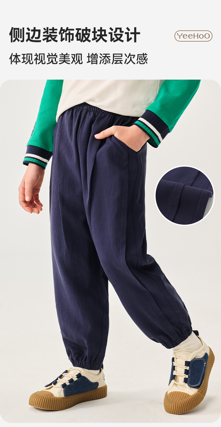 【英氏】【亚麻透气】【110-150】男童春秋休闲裤