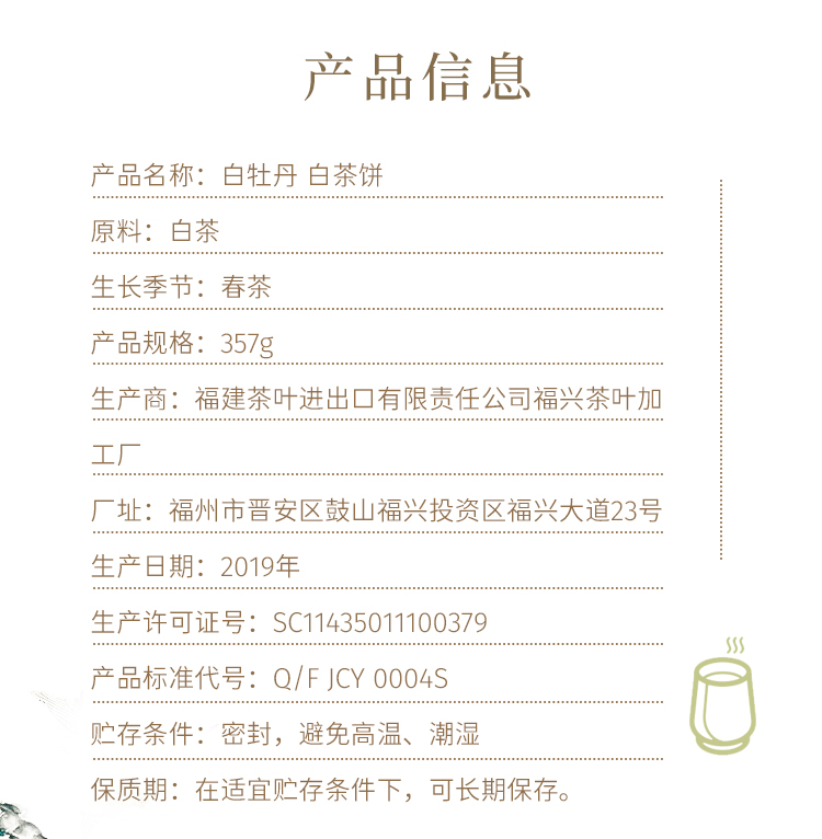 白茶 中茶 2019年白牡丹5911白茶饼 357g