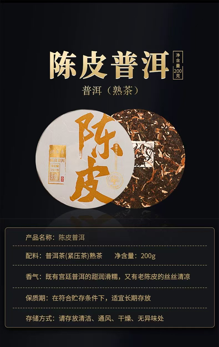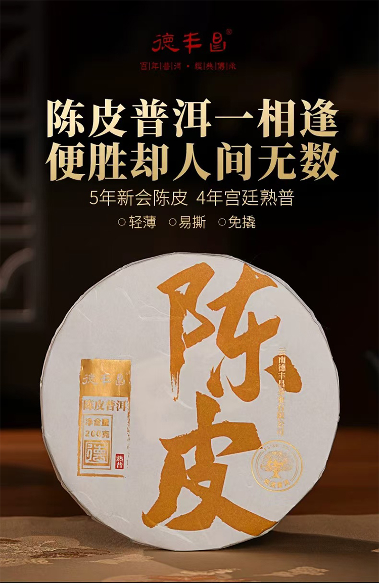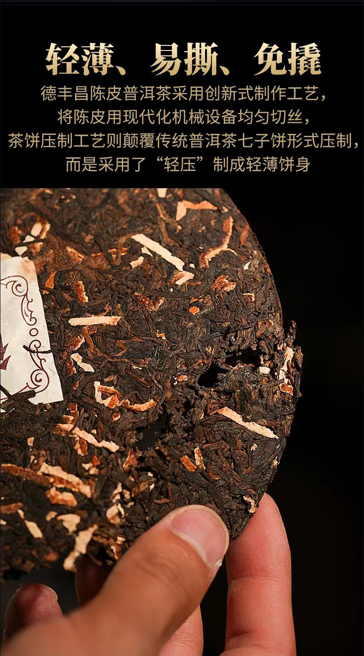 德丰昌 | 2024年 陈皮熟普手撕饼(5年新会陈皮+4年勐海地区宫廷熟普)200g/饼