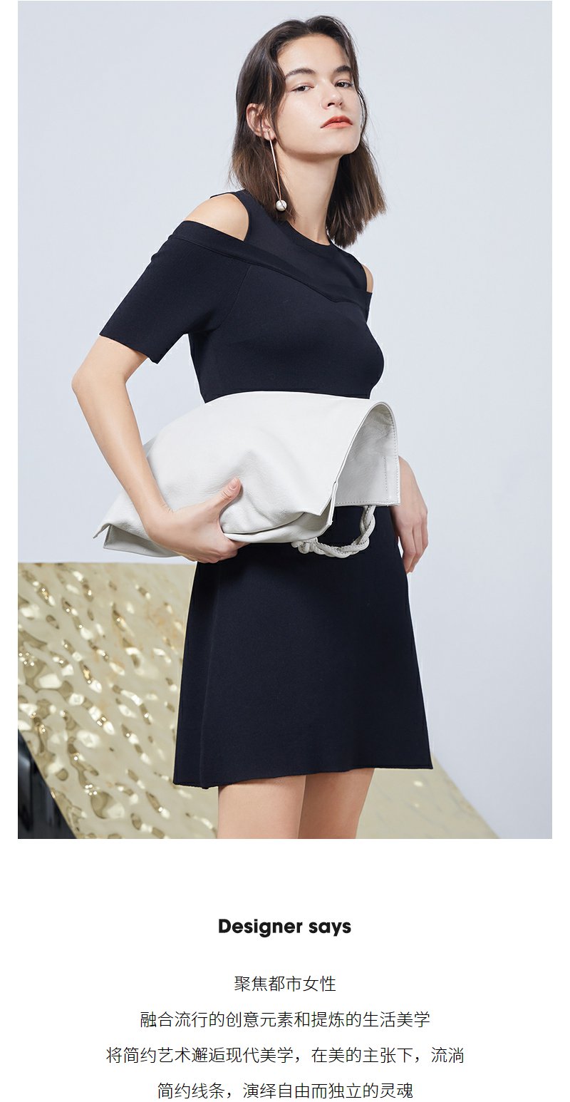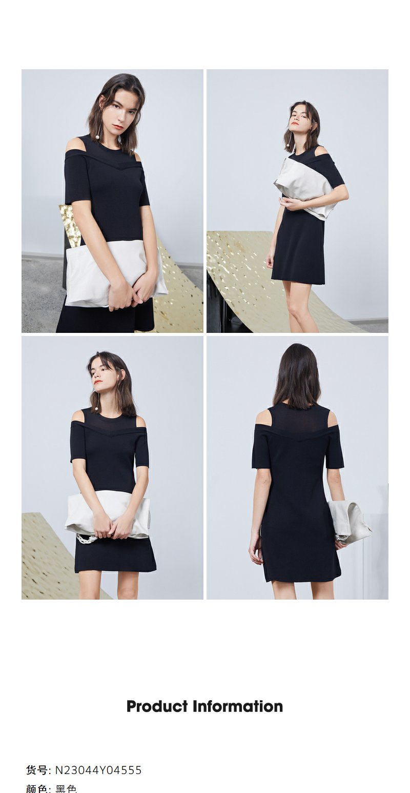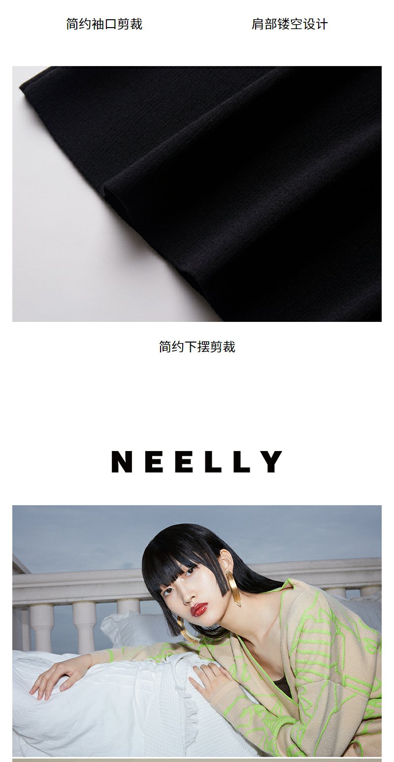 NEELLY纳俪商场同款露肩连衣裙设计感法式女A字裙中长款收腰显瘦N23044Y04555