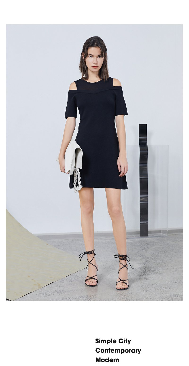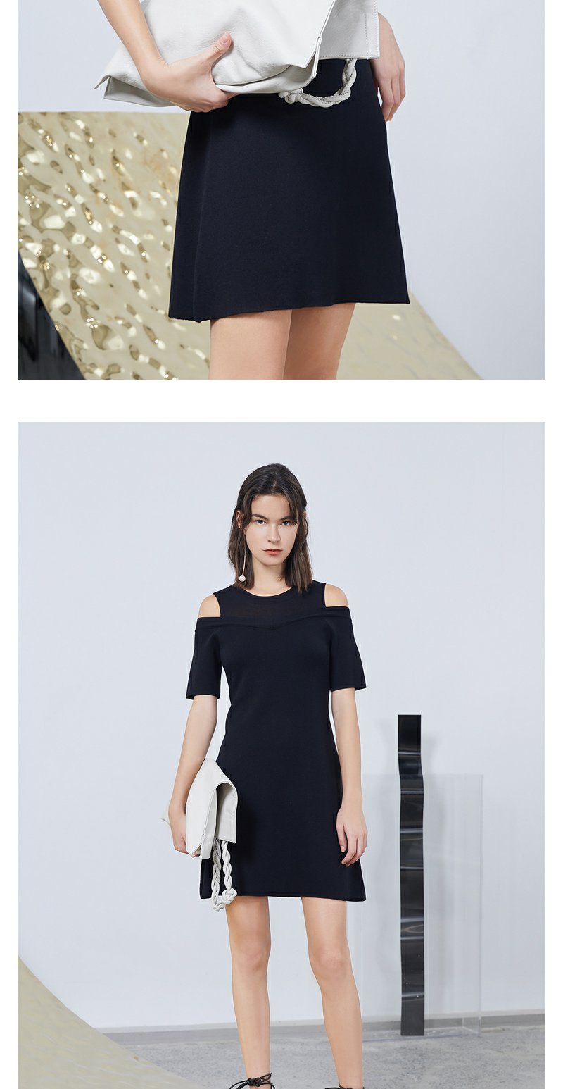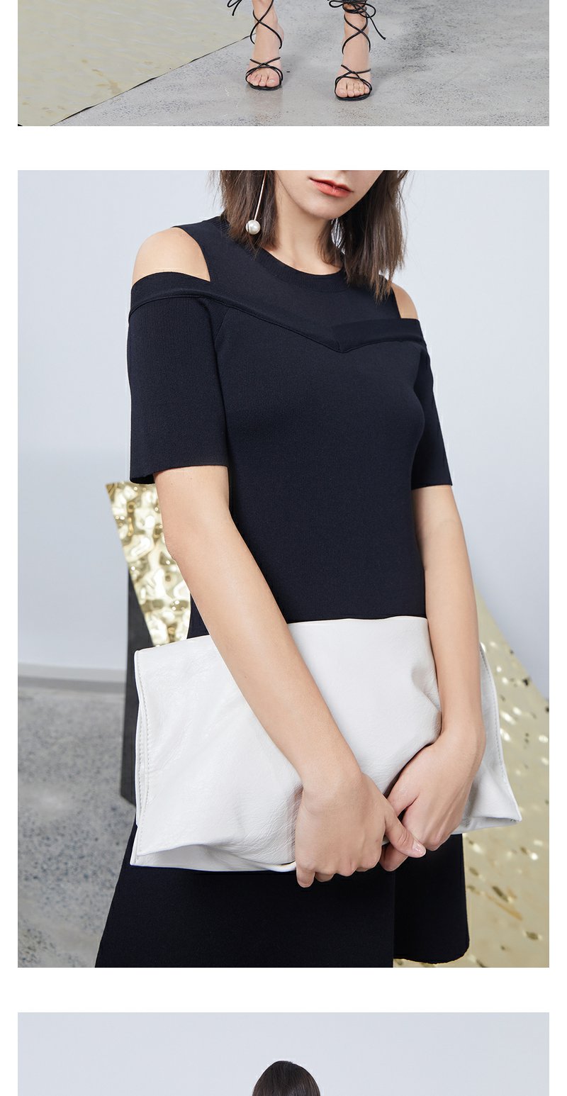 NEELLY纳俪商场同款露肩连衣裙设计感法式女A字裙中长款收腰显瘦N23044Y04555