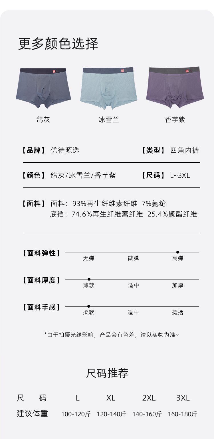 【59元3条,下单拍3】优待源选男士底裤青年简约纯色舒适四角内裤YXNM001