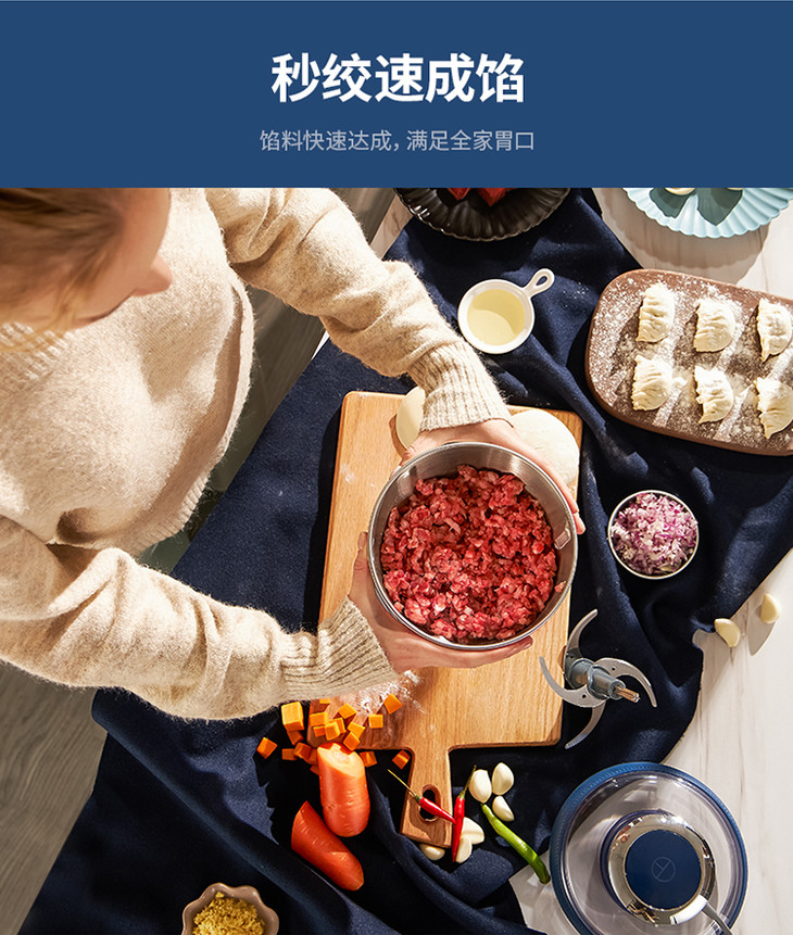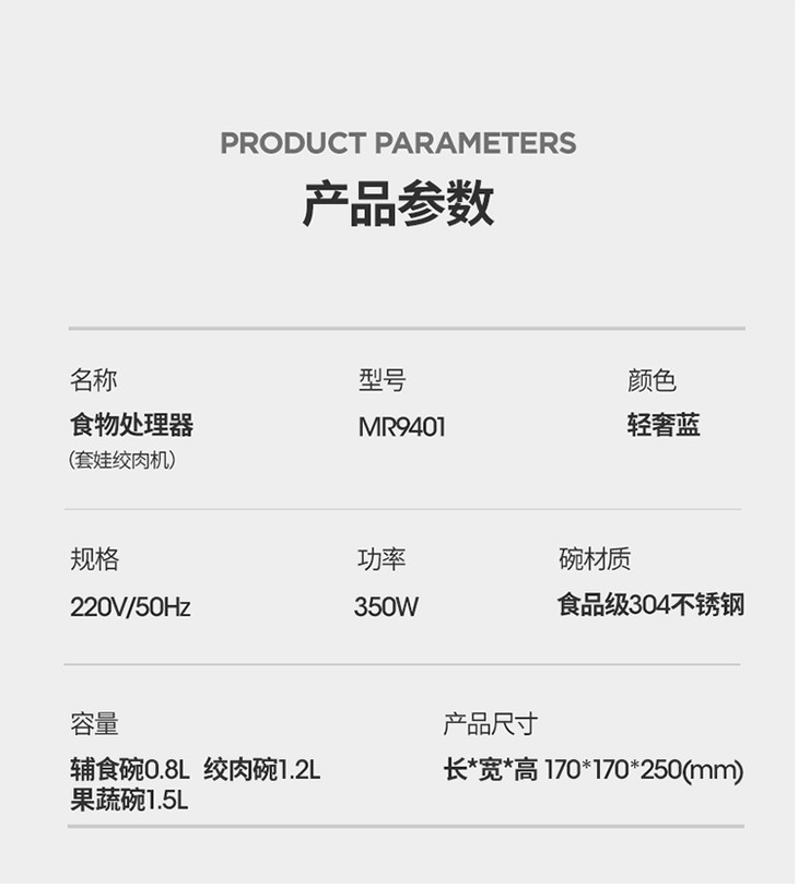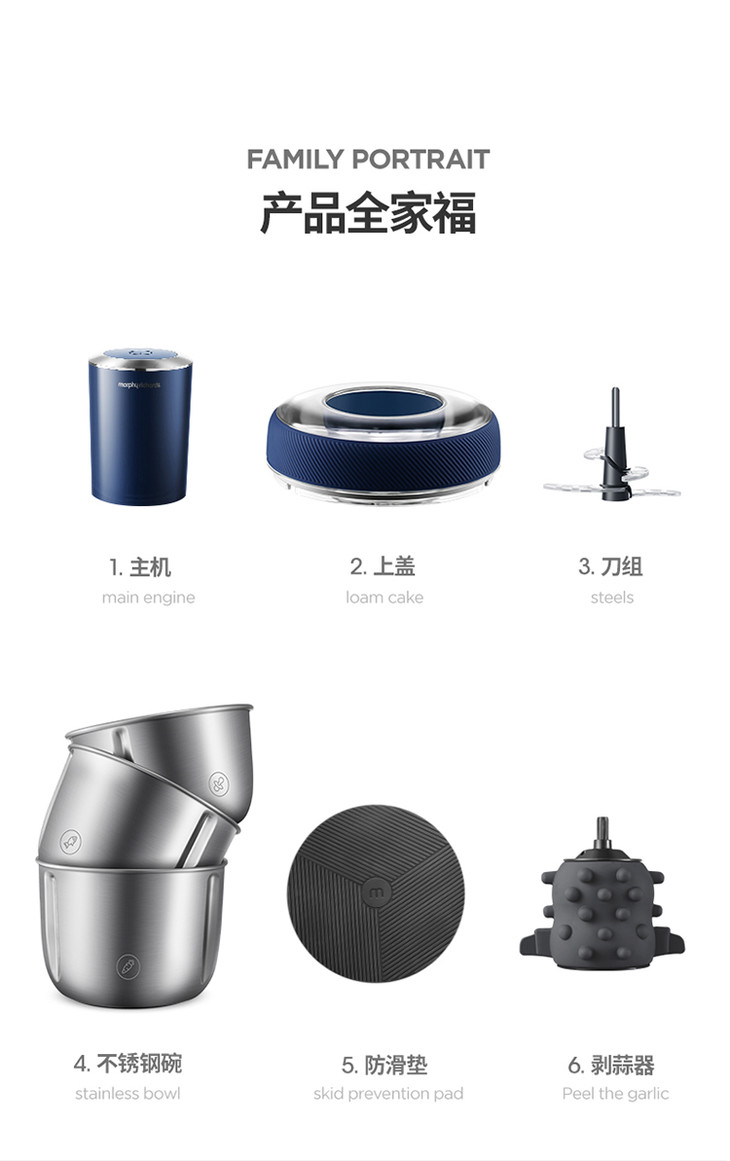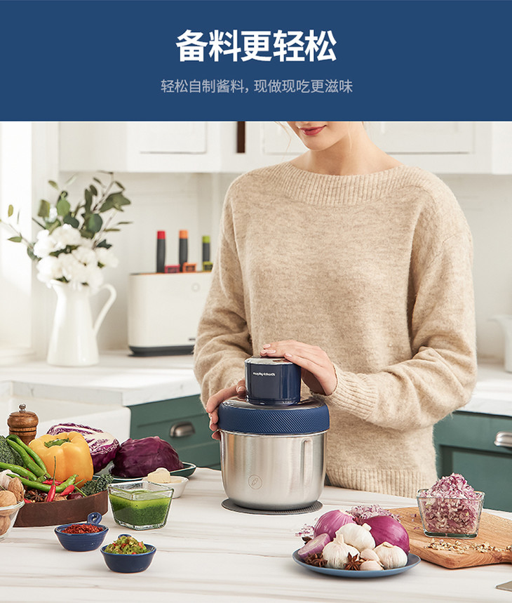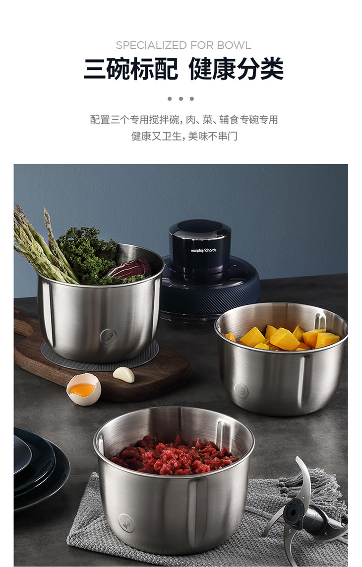 【套娃式收纳】英国摩飞绞肉机MR9401全能料理机三碗配置智能剥蒜/绞肉/切菜/辅食一机搞定易拆易清洗【摩飞系列】
