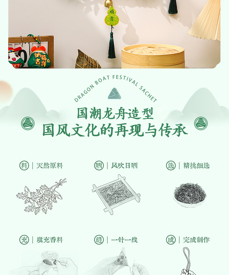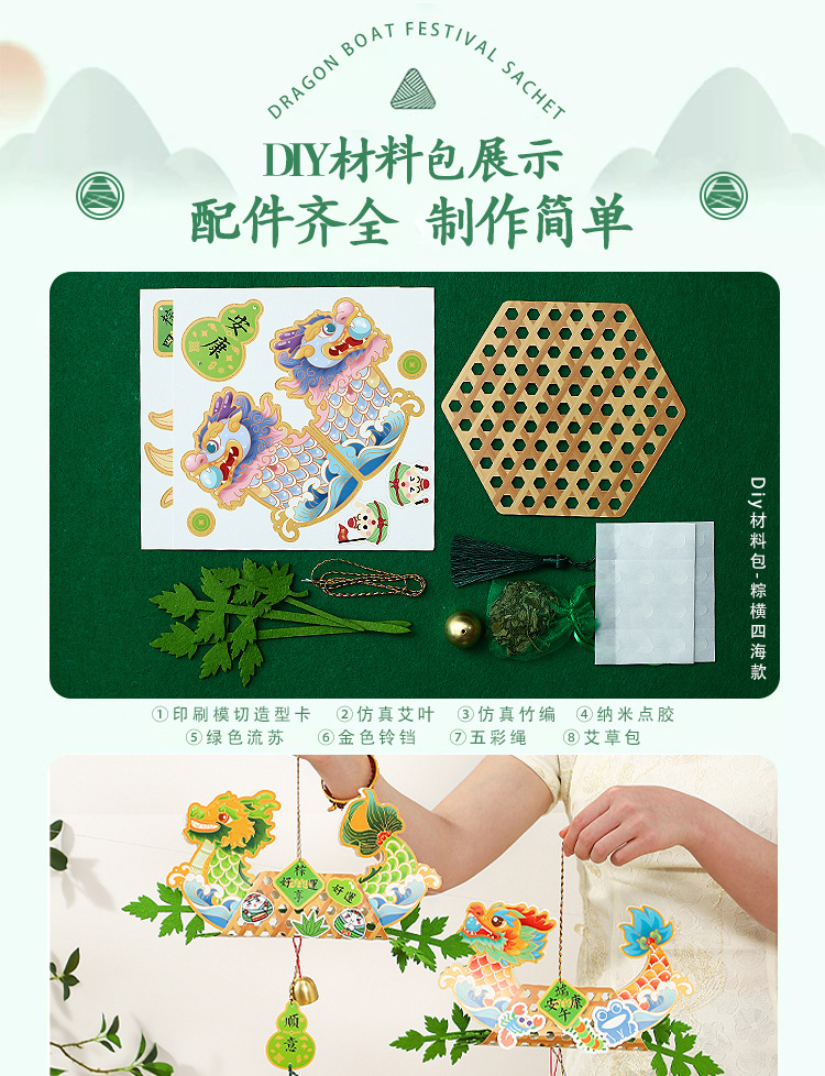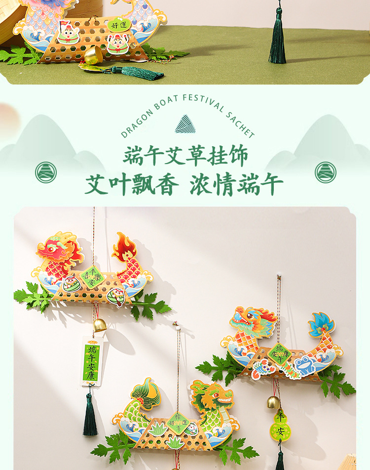 【端午节龙舟艾草挂饰】国潮挂件手工制作DIY材料包 幼儿园儿童礼物品