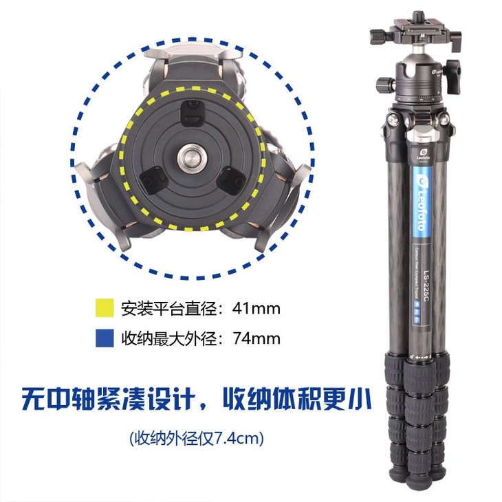 狼族优选丨5节22管碳纤维无中轴承重4kg三脚架云台套装LS-225C+EB-36