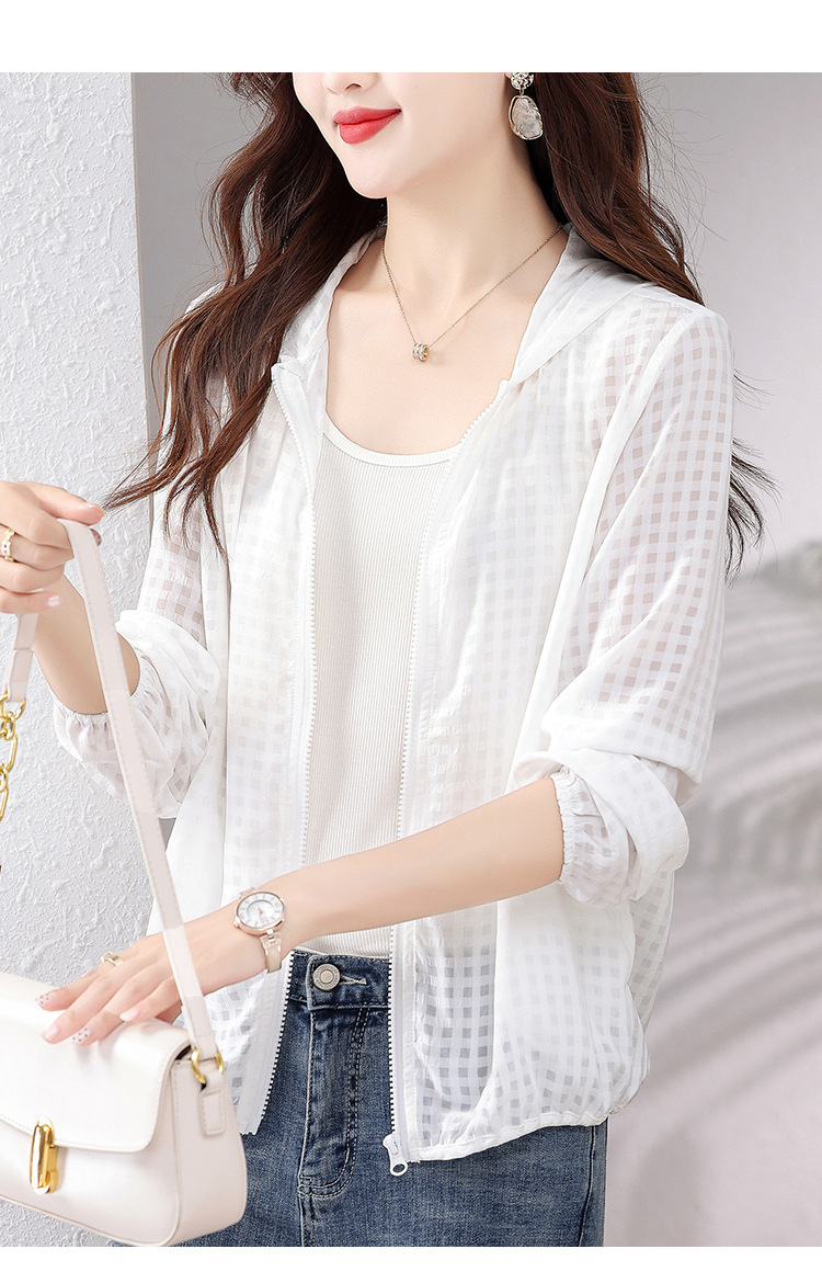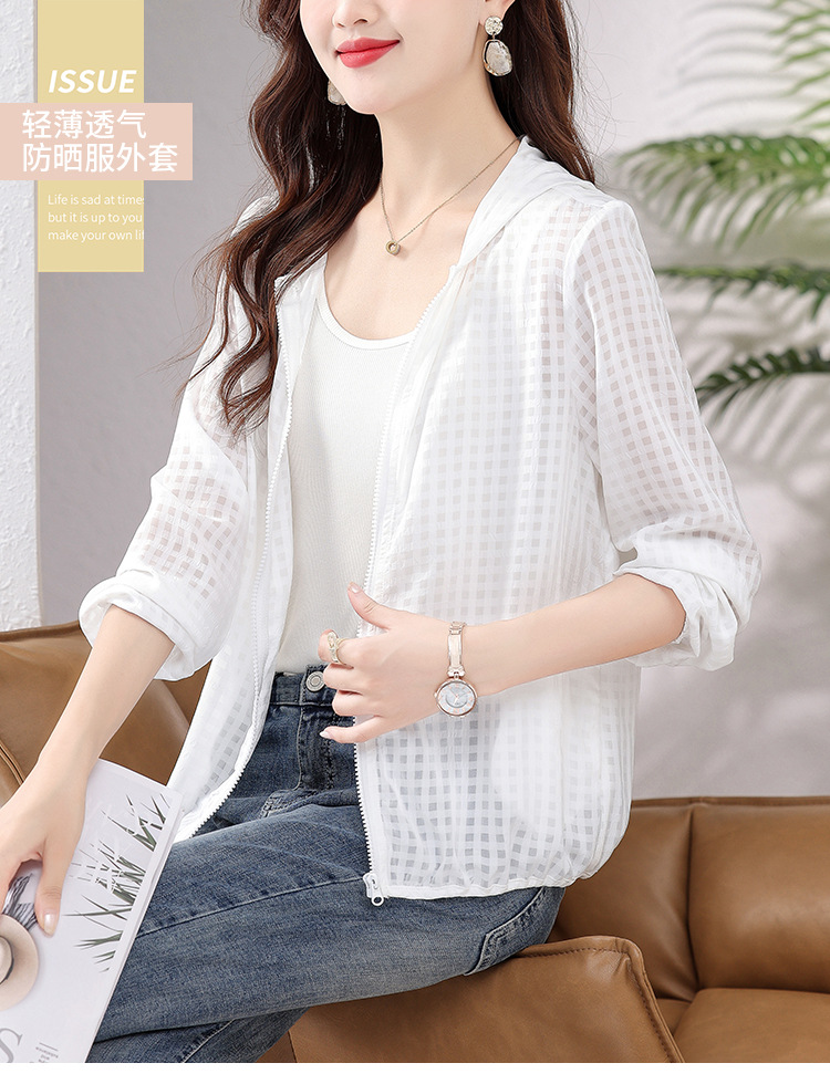 时尚百搭,薄款透气白色衣夏装新款简约休闲大码开衫外套AHM-xde2160