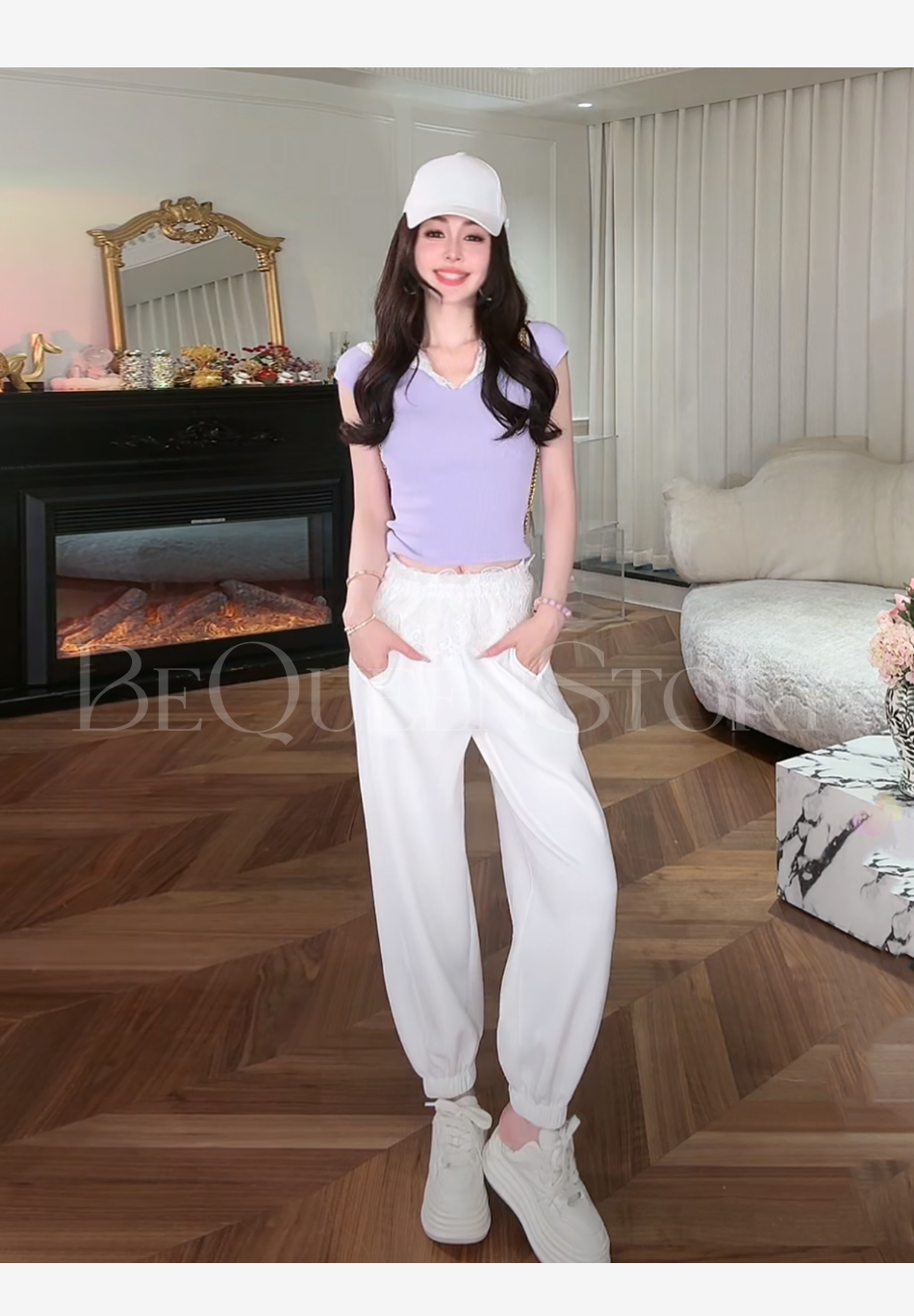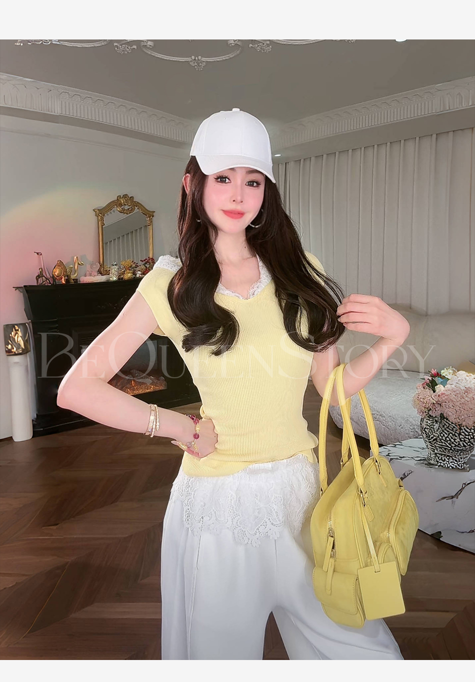 余潇潇【寻梦甜心】2025春装新款设计感针织凉爽纱线蕾丝帽子短袖