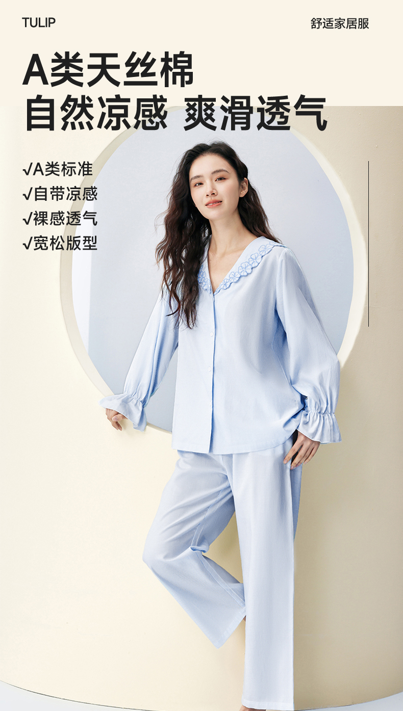 女士天丝棉亲肤睡衣(花领)