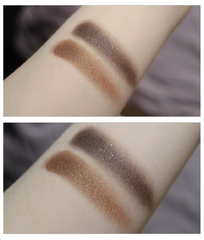 左边是带闪的金棕色,上眼闪的是很内敛的