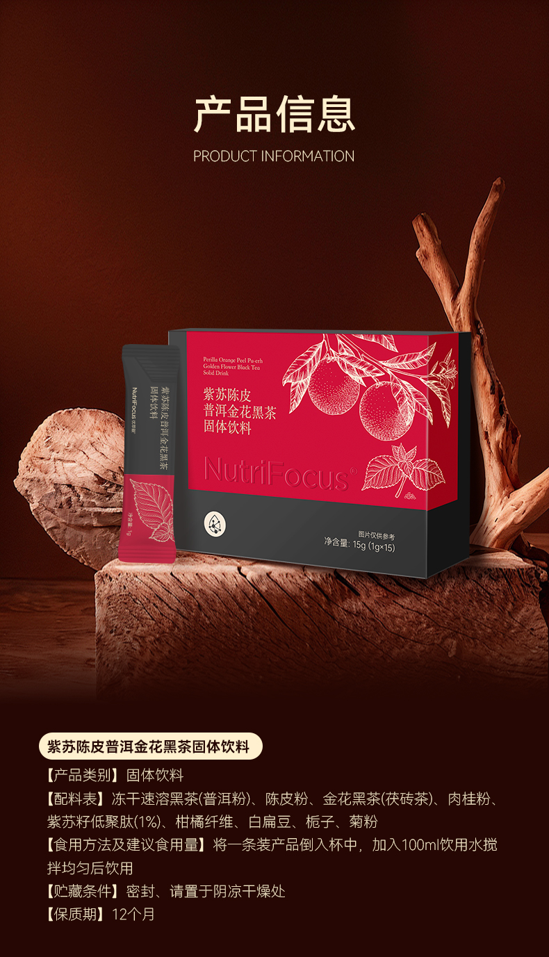 紫苏陈皮普洱金花黑茶固体饮料10盒(1g*15袋/盒) 季度套餐 A-4093