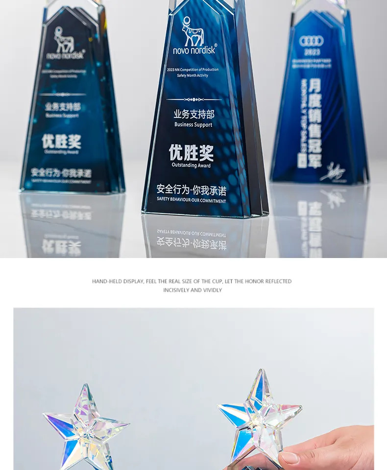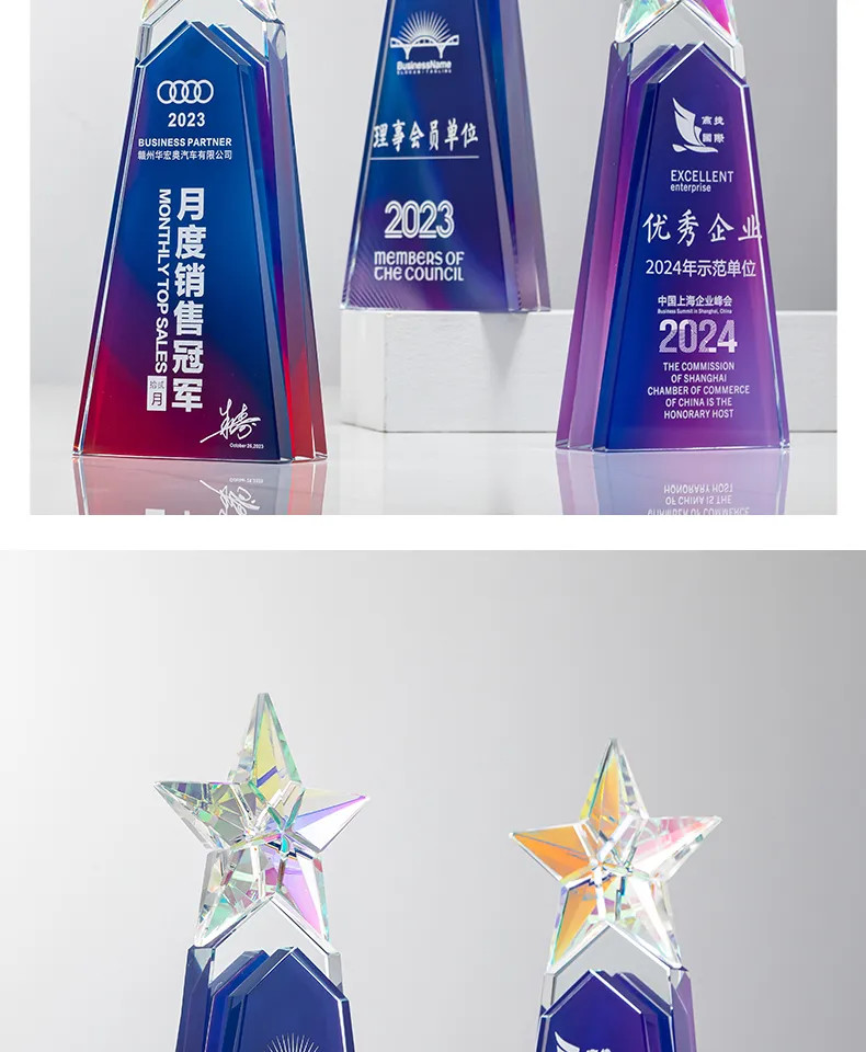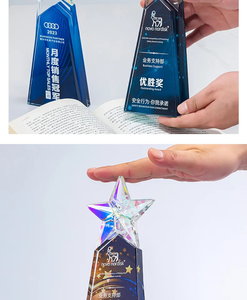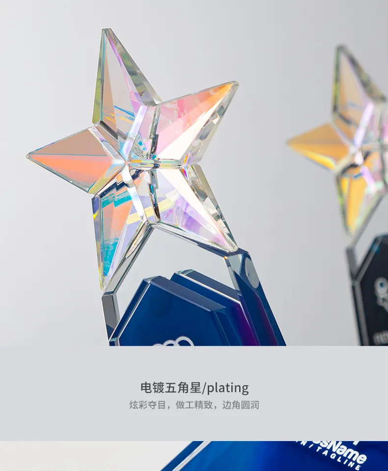 五角星水晶奖杯定制创意彩色奖牌优秀员工荣誉颁奖纪念品