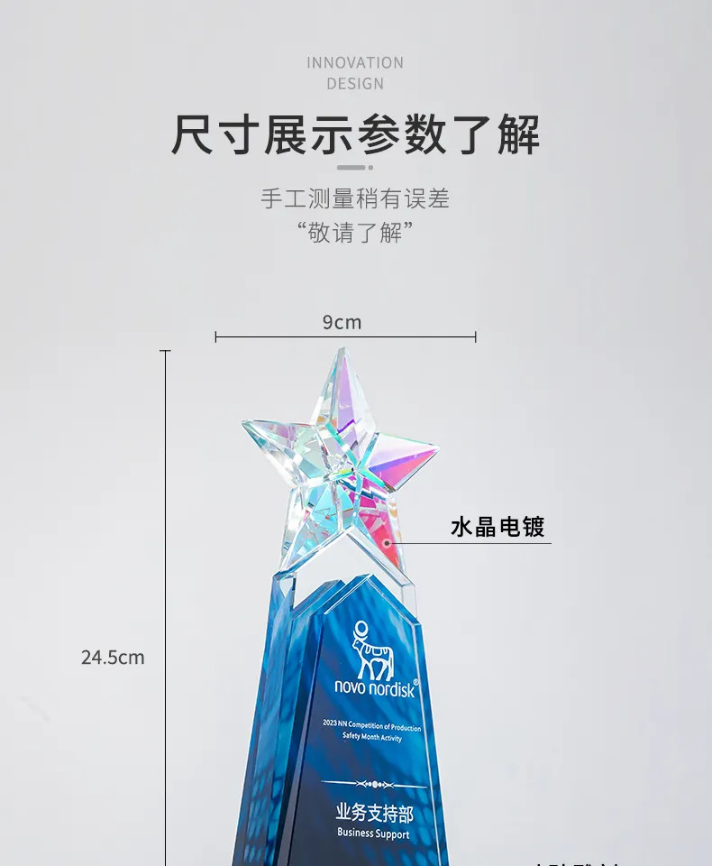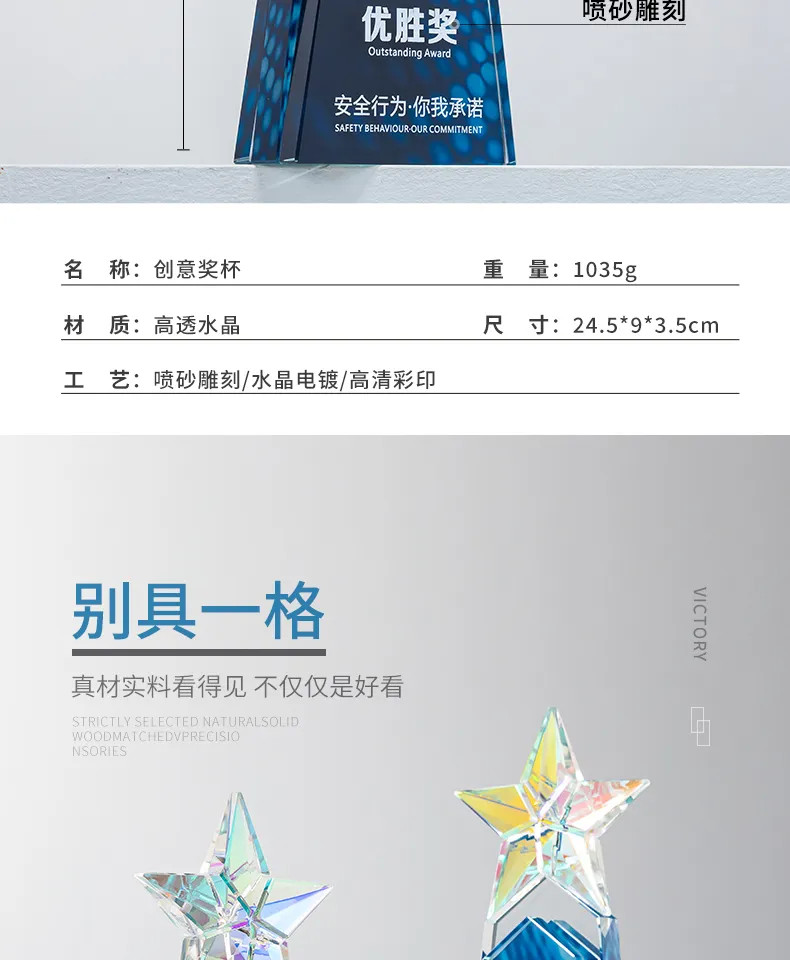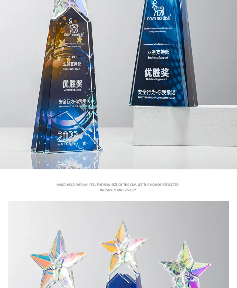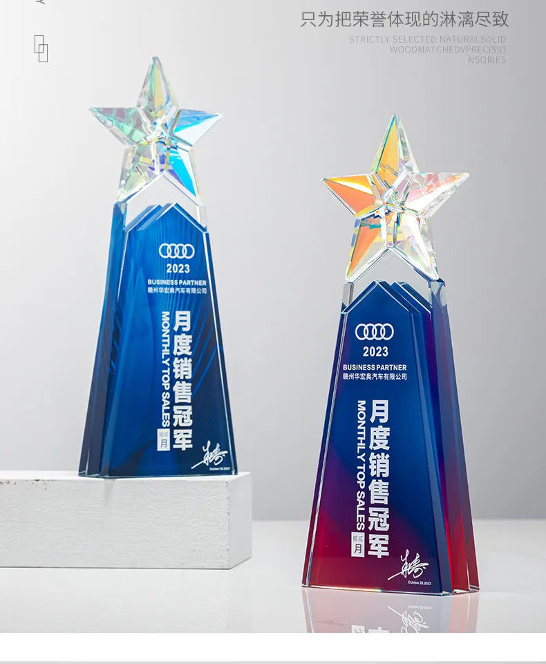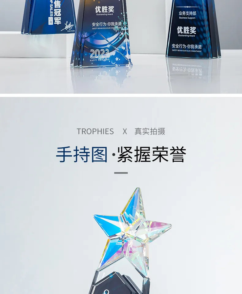 五角星水晶奖杯定制创意彩色奖牌优秀员工荣誉颁奖纪念品