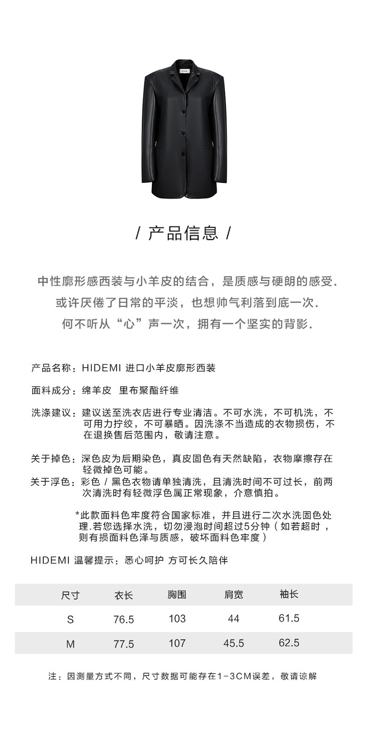 HIDEMI黑色小羊皮廓形西装