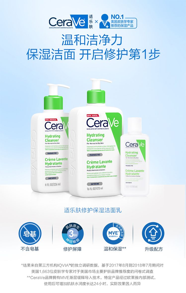 【预售 急单慎拍】Cerave适乐肤无泡温和洁面乳236-473ml 洗面奶