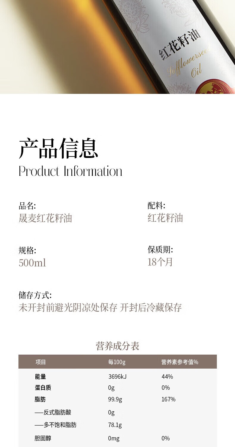 晟麦红花籽油500ml
