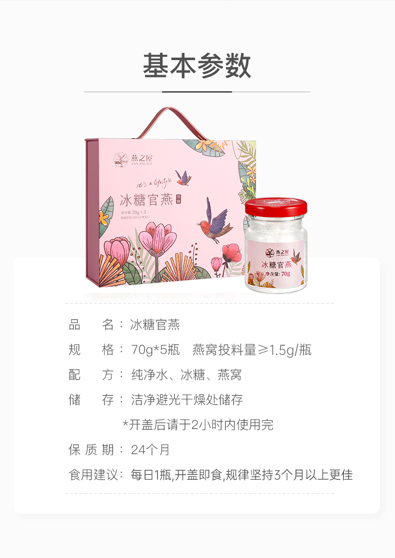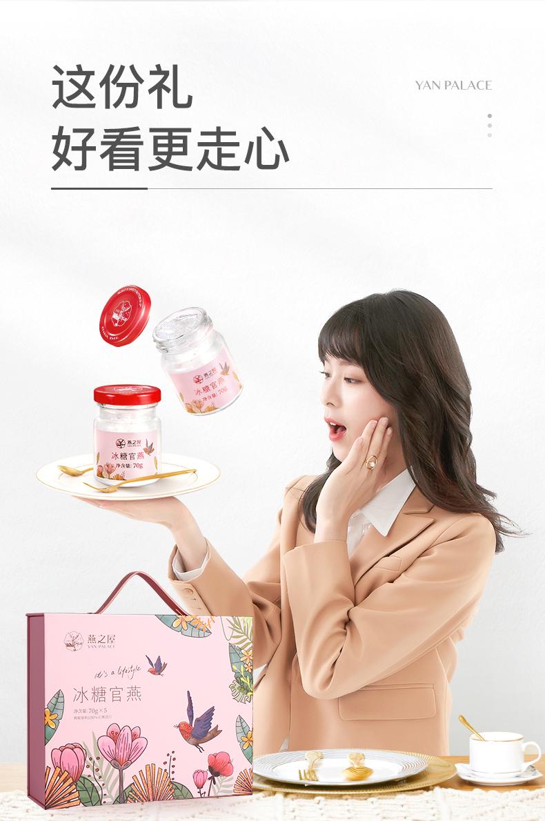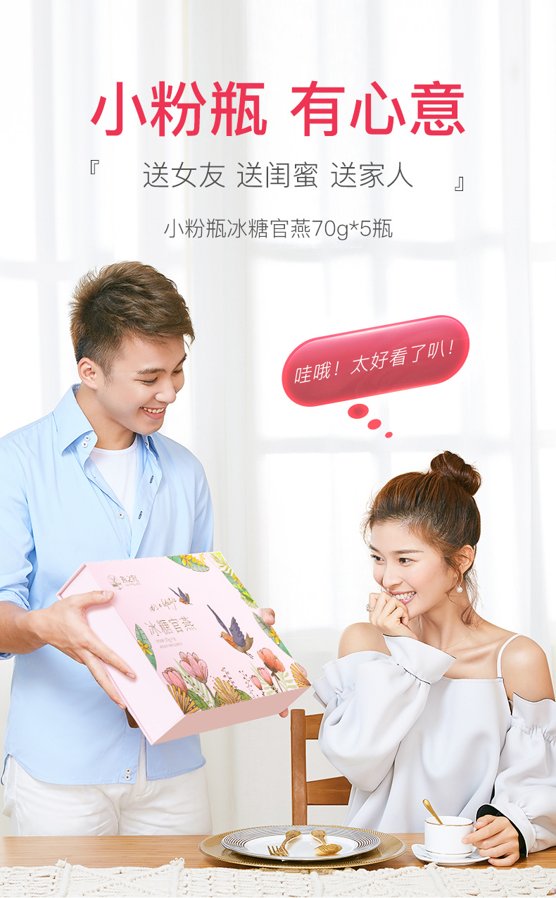 【品牌优选】燕之屋官方旗舰即食冰糖官燕小粉瓶礼盒70g*5瓶