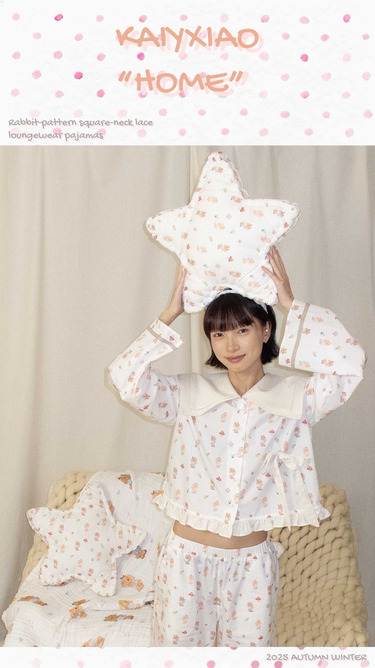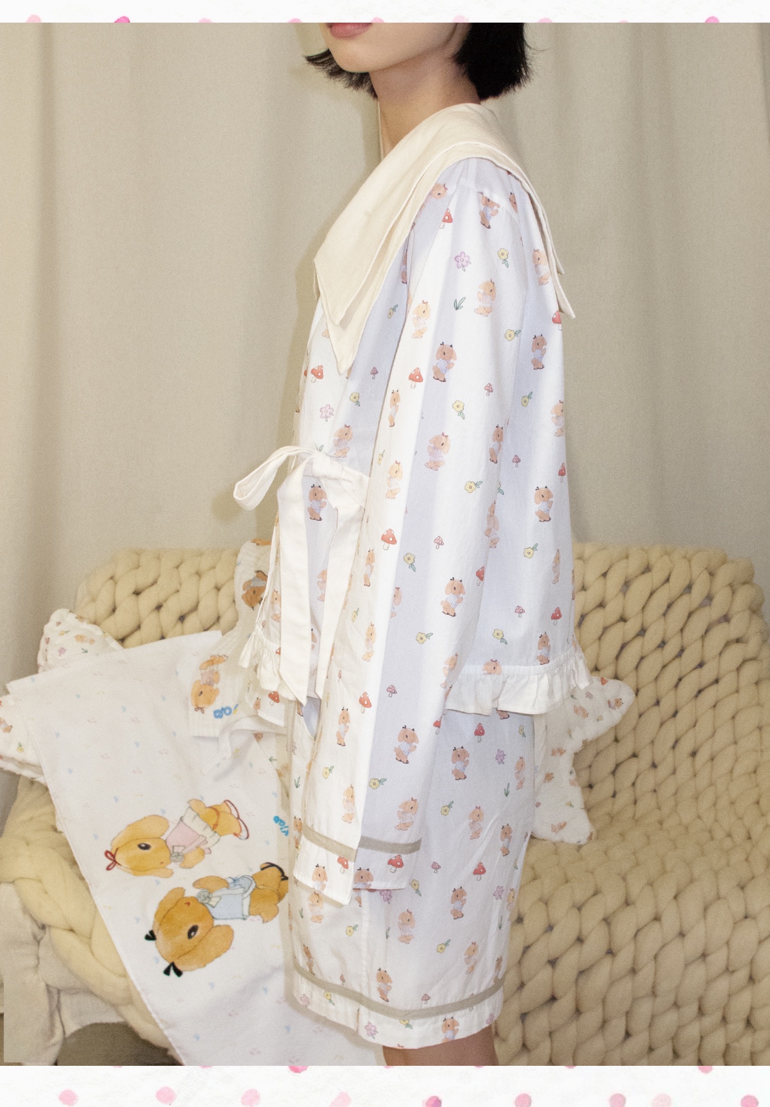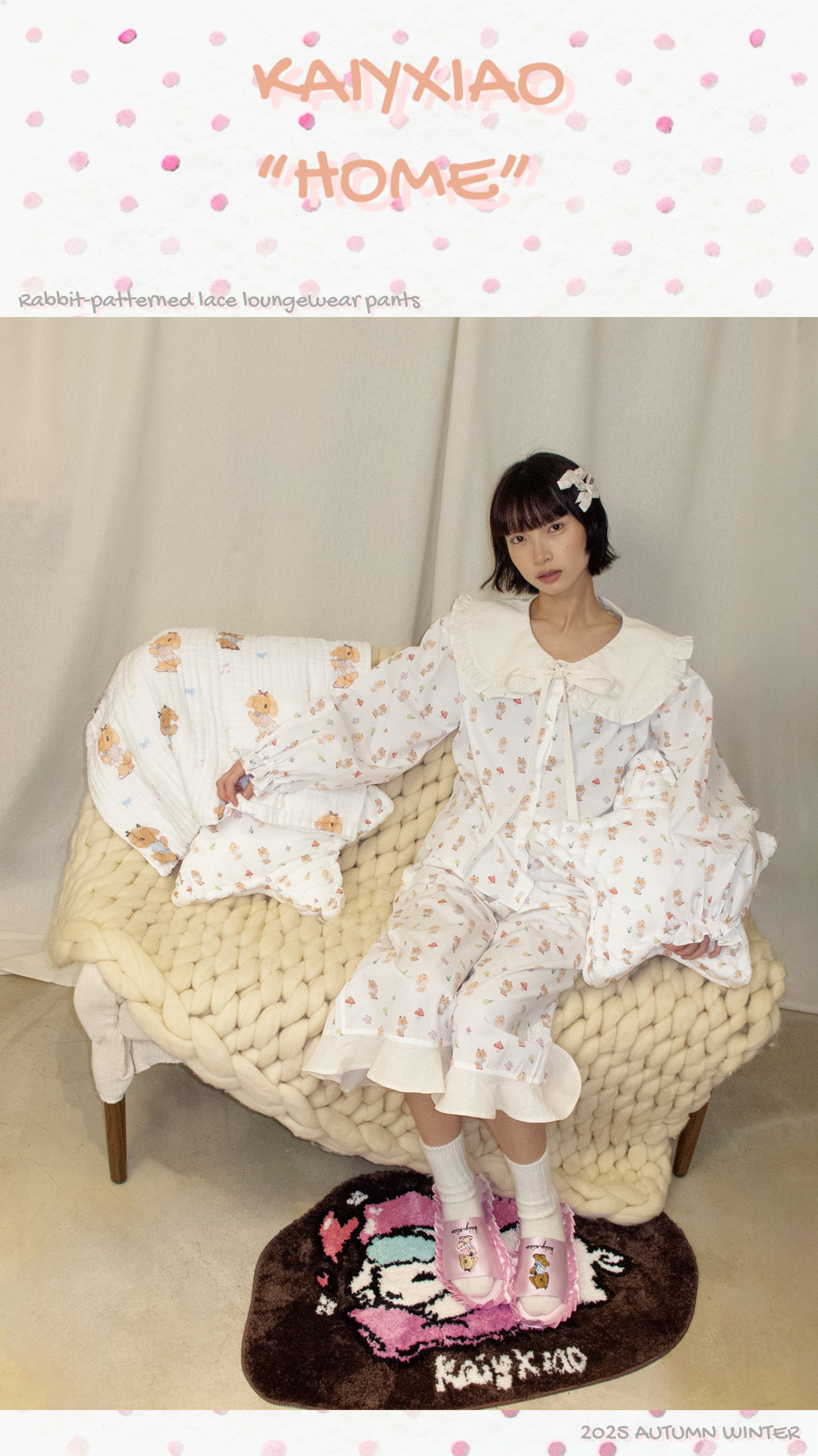KAIYXIAO·HOME系列 小兔子· 海军领花边家居睡衣套装