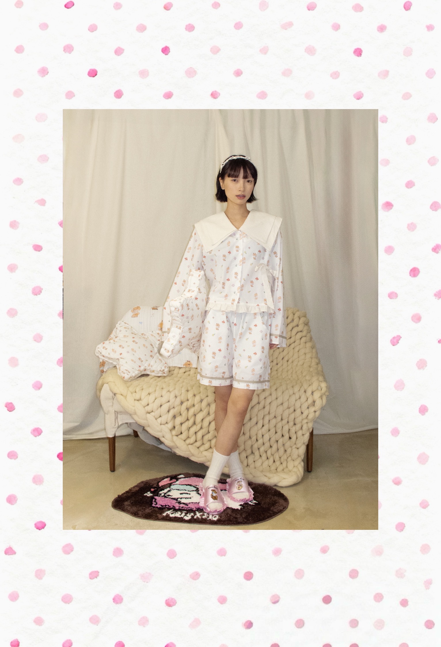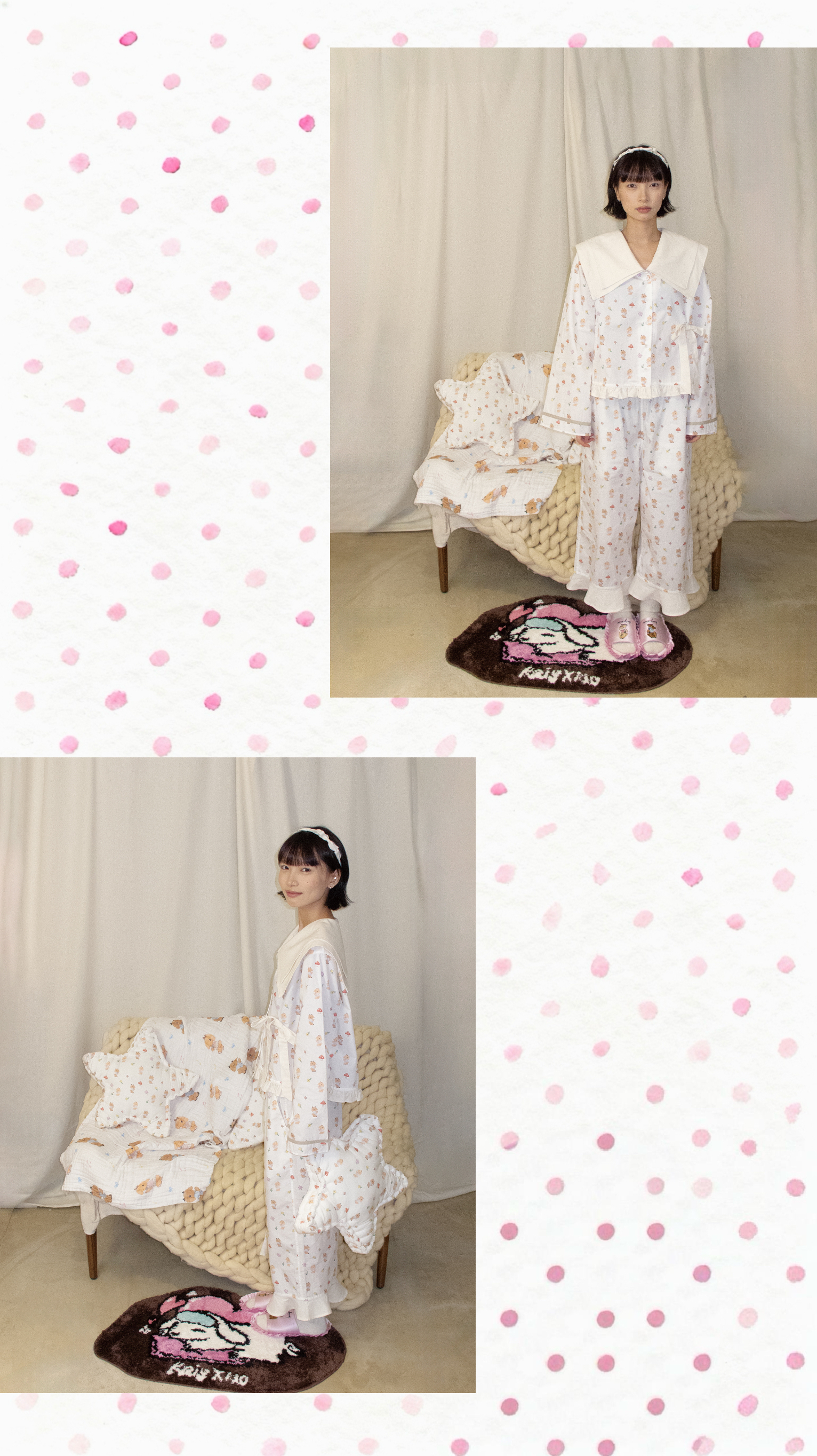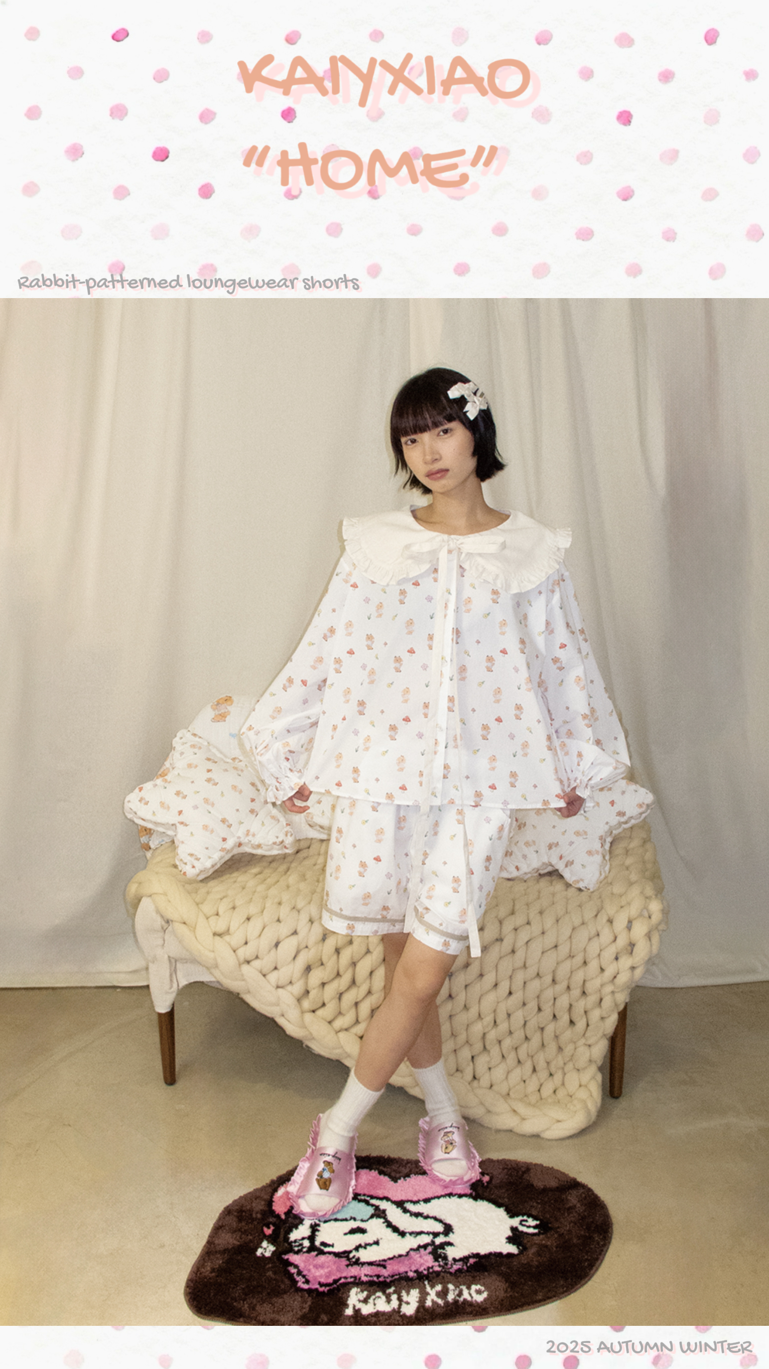 KAIYXIAO·HOME系列 小兔子· 海军领花边家居睡衣套装