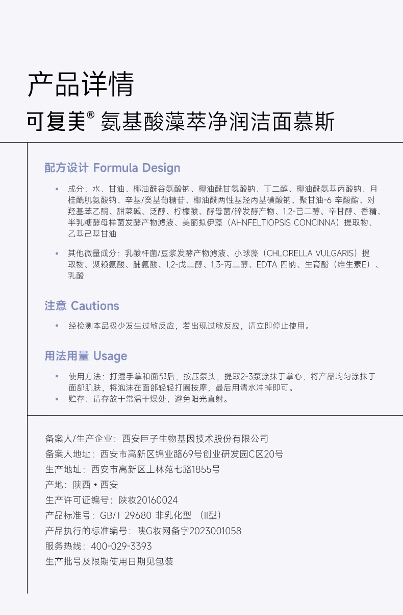 可复美氨基酸藻萃净润洁面慕斯 (吨吨洁面慕斯) 150ml/瓶