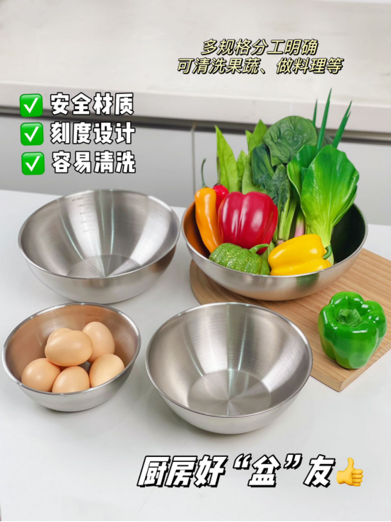 🔺全部采用优质不锈钢 🔺耐高温耐腐蚀的同时使用寿命还很长 可以洗果蔬、烘焙、拌沙拉、打蛋等