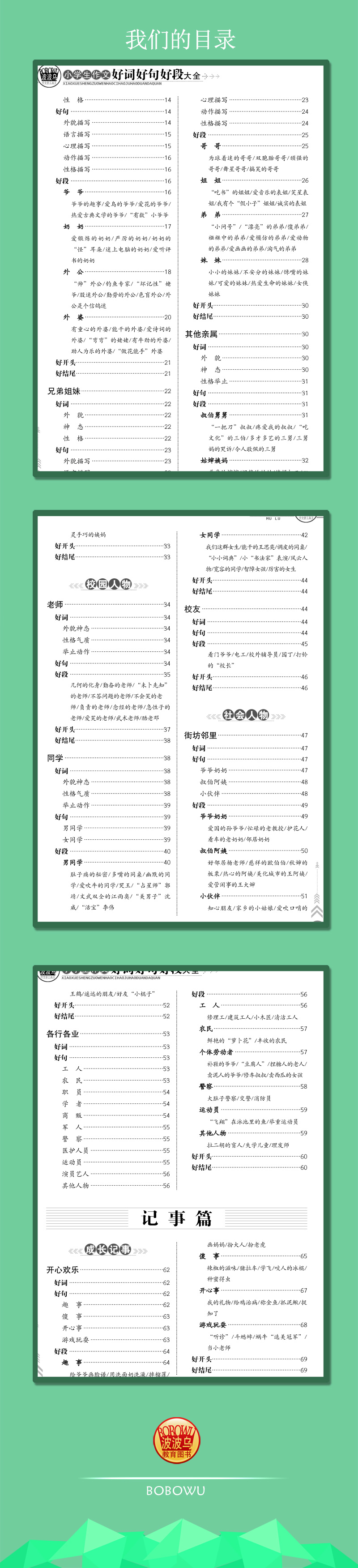 波波乌作文 小学生作文好词好句好段大全 小升初必备 畅销升级版 季小兵 主编 小学生获奖优秀满分作文素材 首都师范大学出版社