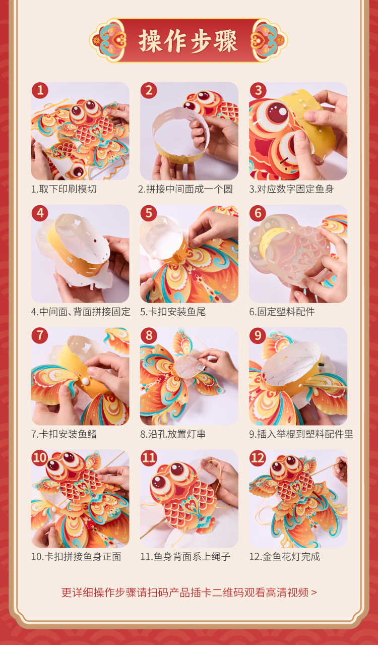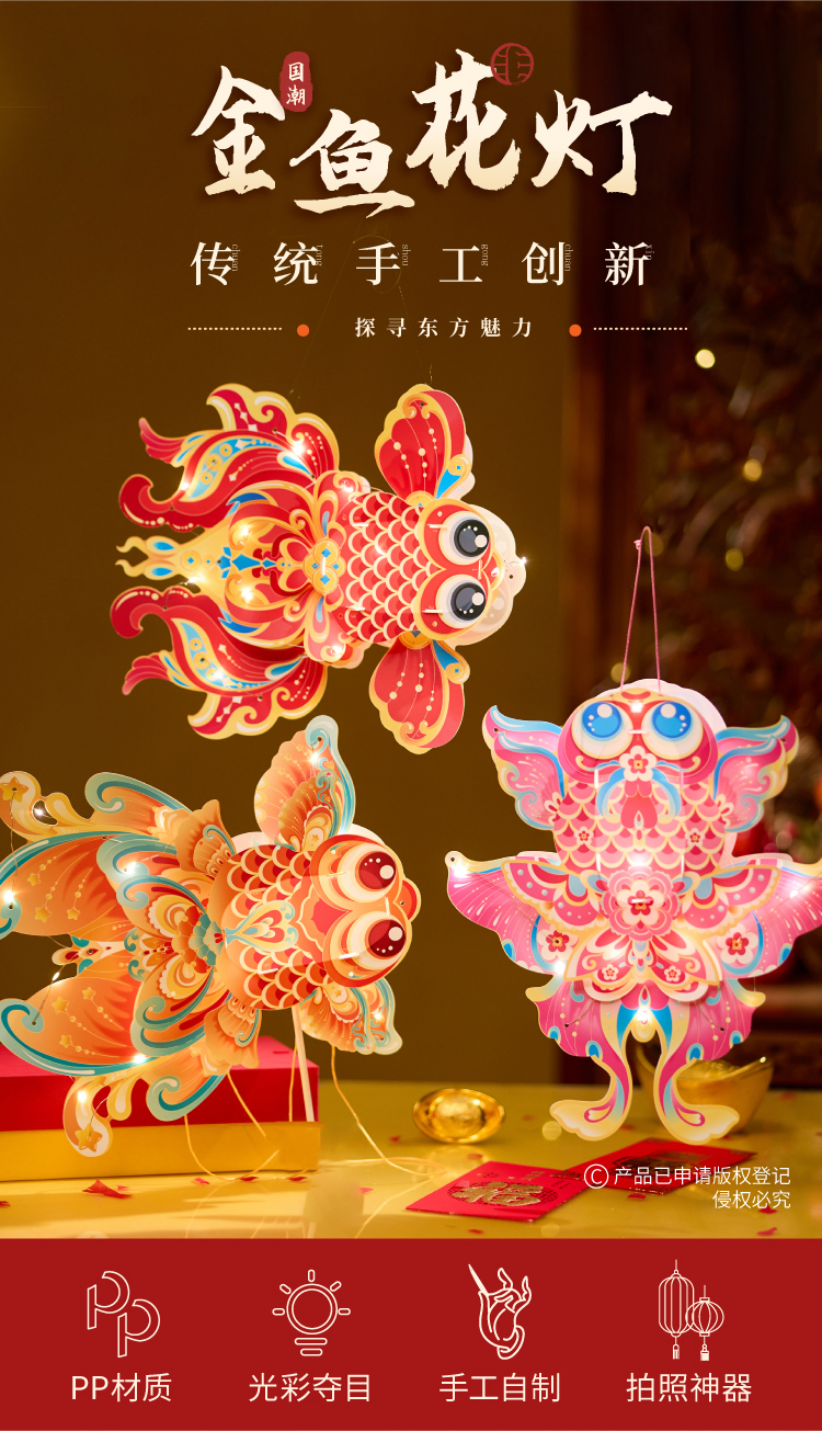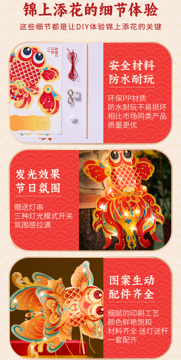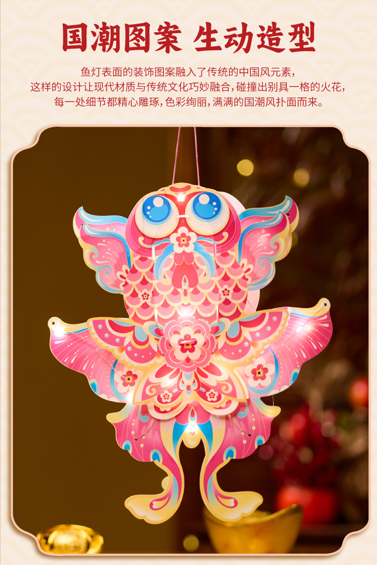户外春天金鱼花灯手工diy儿童制作材料包幼儿园非遗古风灯笼玩具
