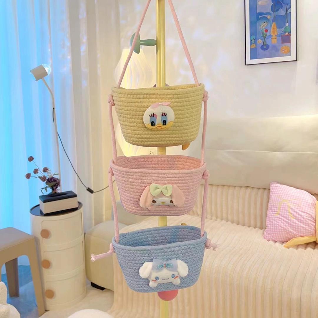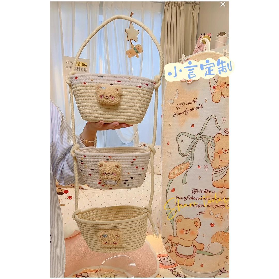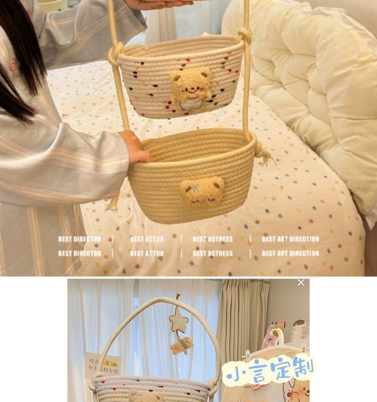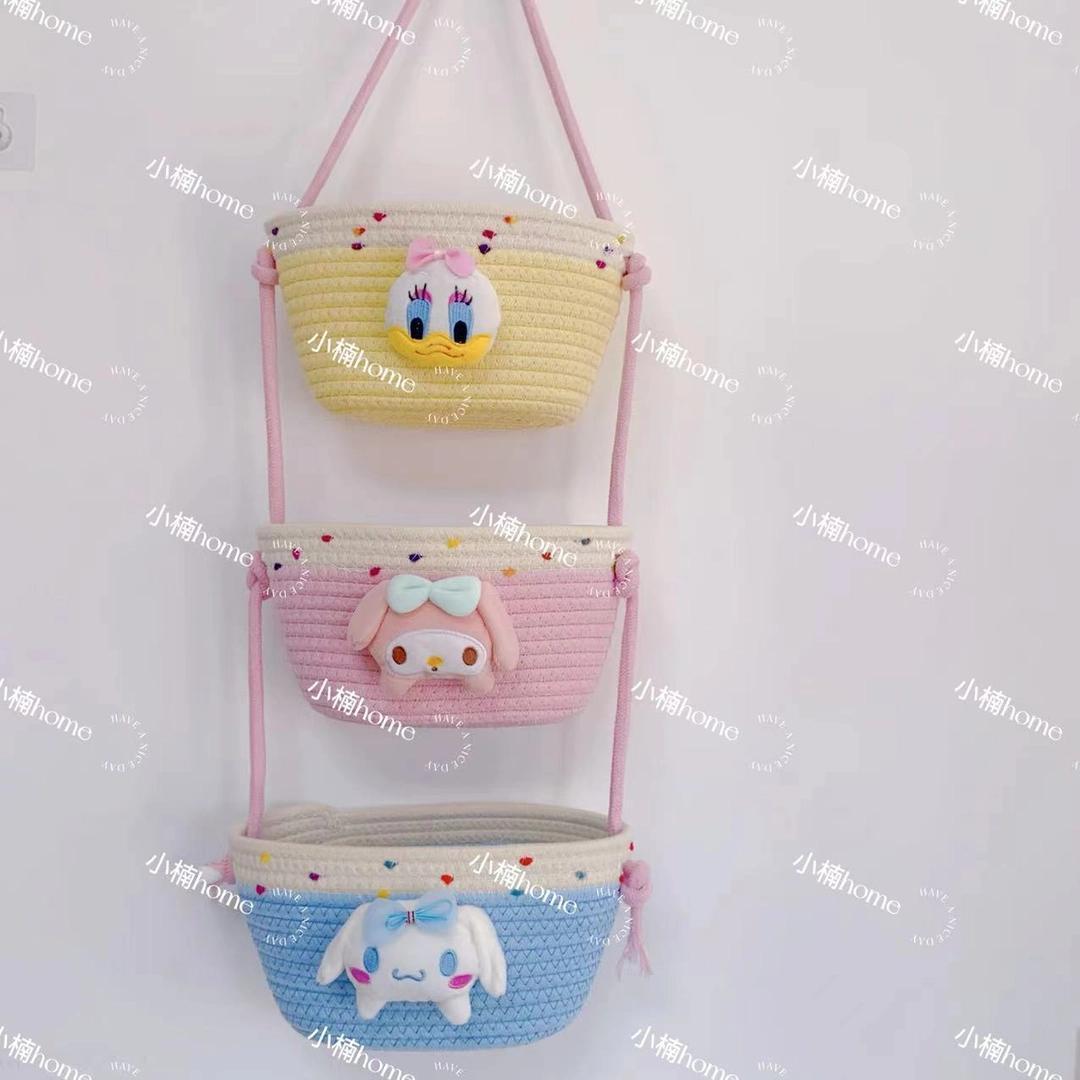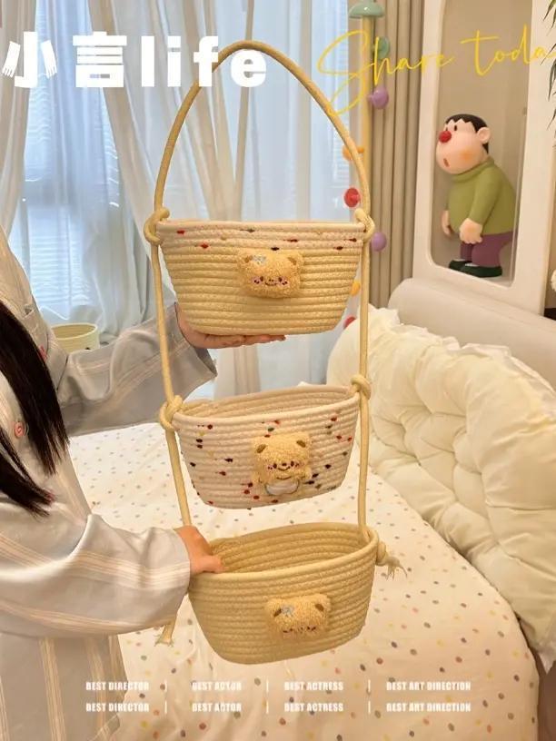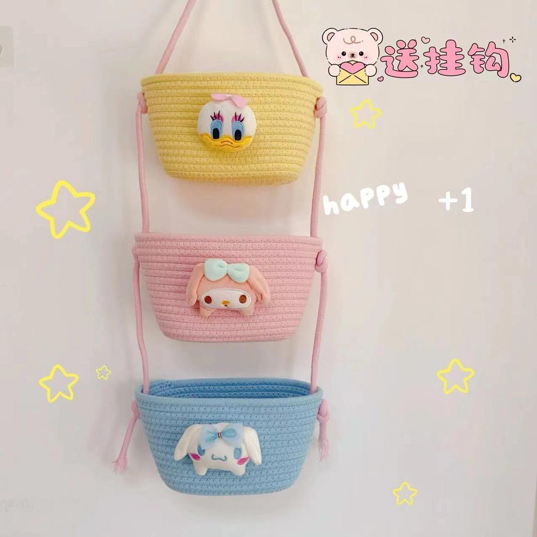 【多层多格收纳❗承重稳定】挂袋卡通挂墙收纳篮挂筐宿舍房间悬挂卧室壁棉线编织墙挂式门后。xb
