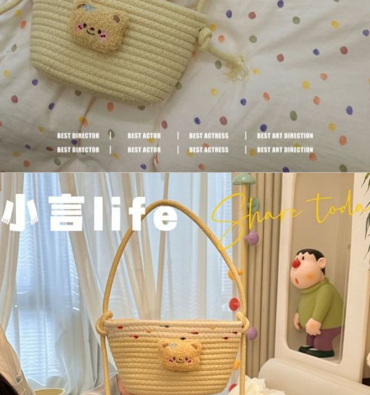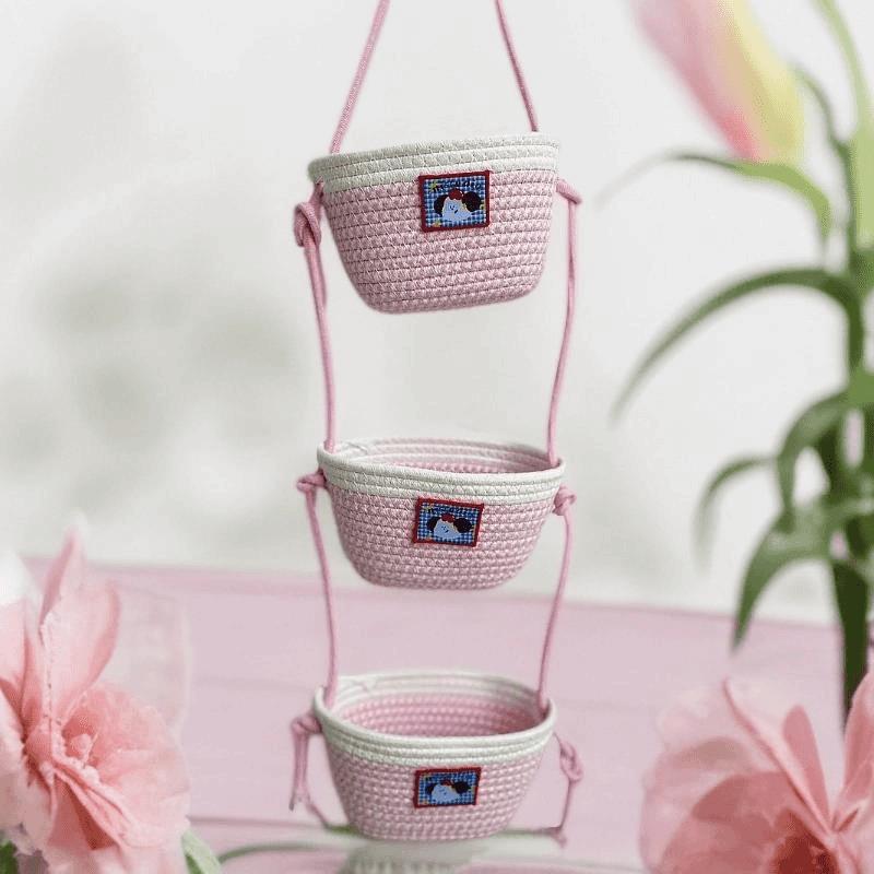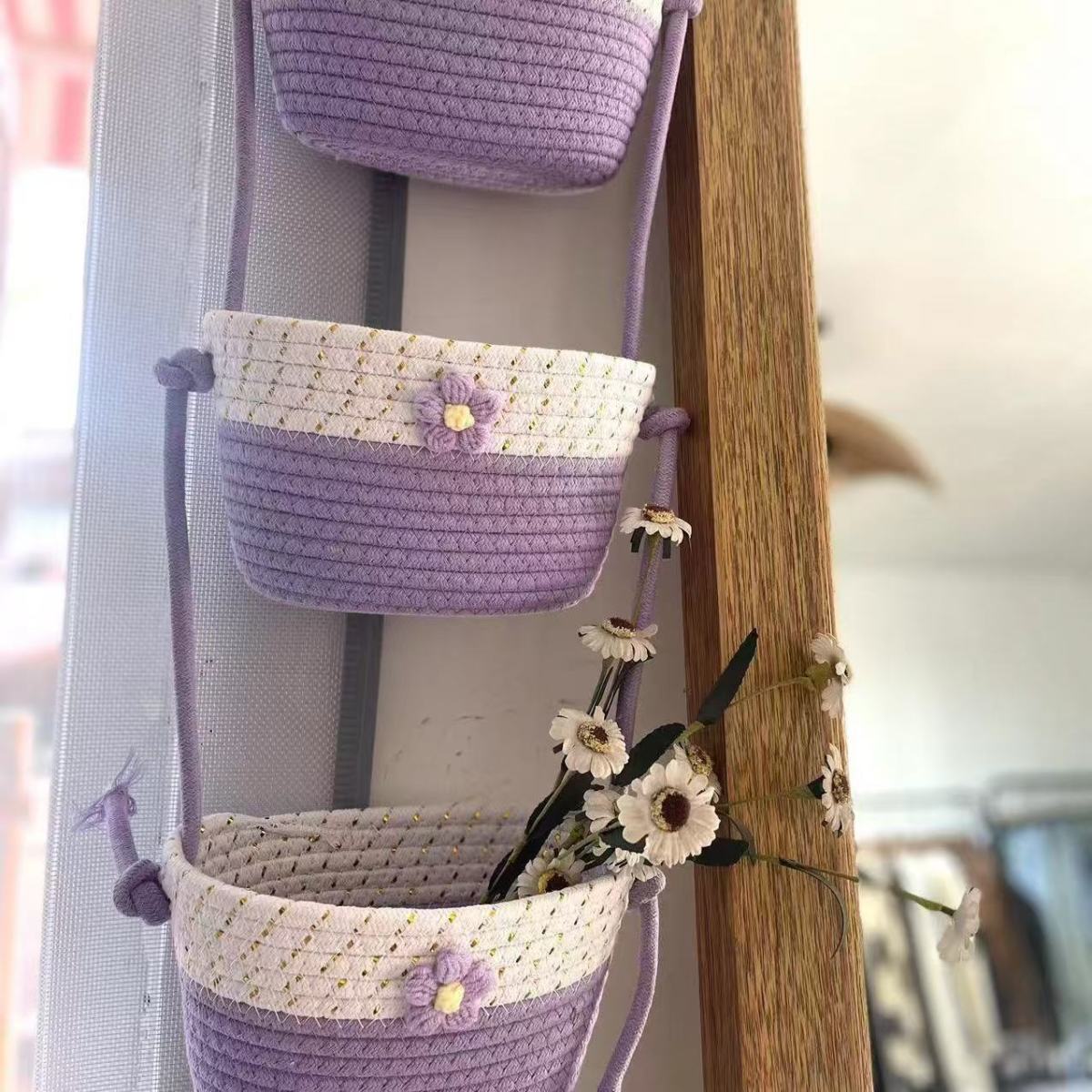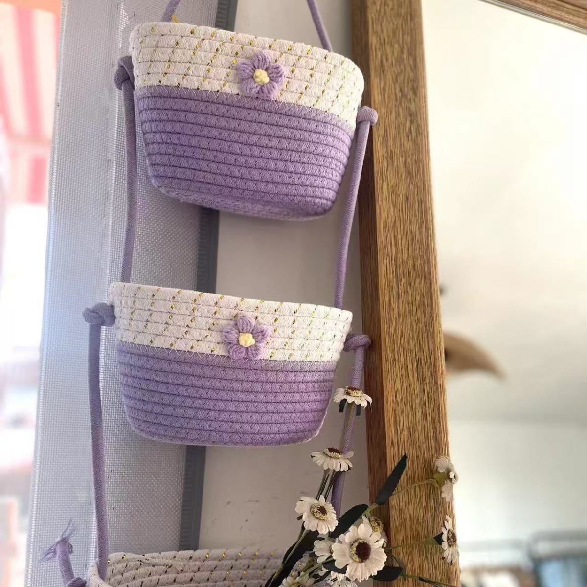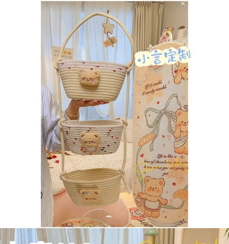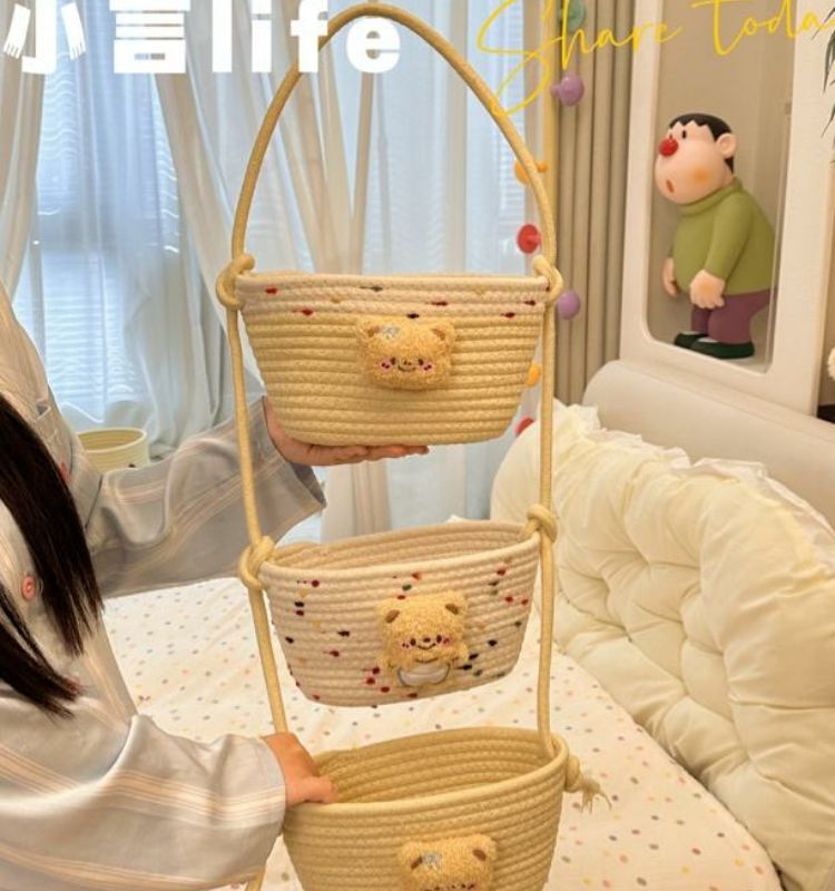 【多层多格收纳❗承重稳定】挂袋卡通挂墙收纳篮挂筐宿舍房间悬挂卧室壁棉线编织墙挂式门后。xb