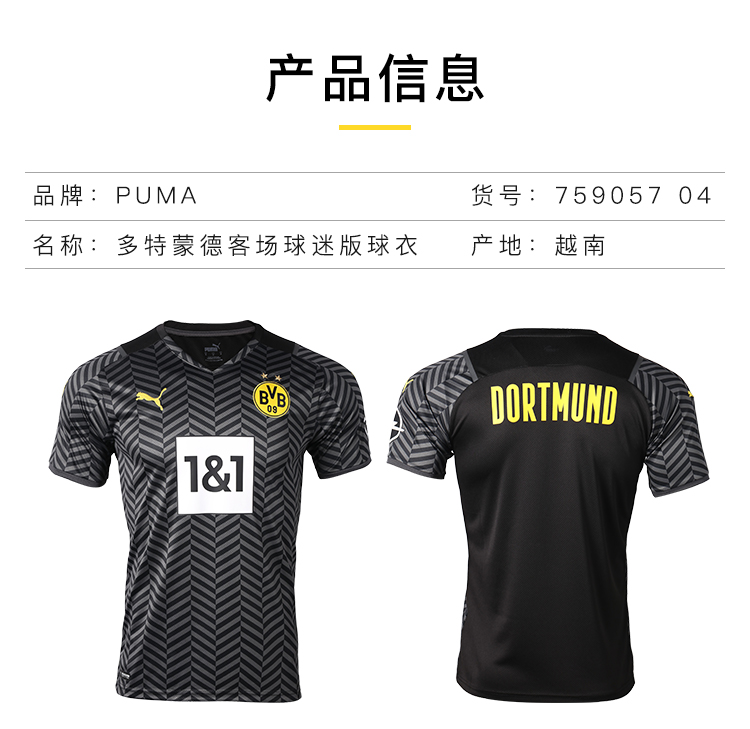 PUMA/彪马 21-22赛季多特蒙德客场球迷版球衣短袖男75905704