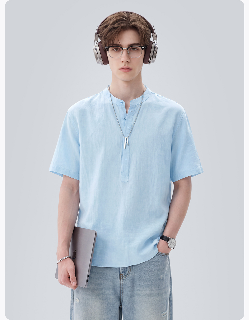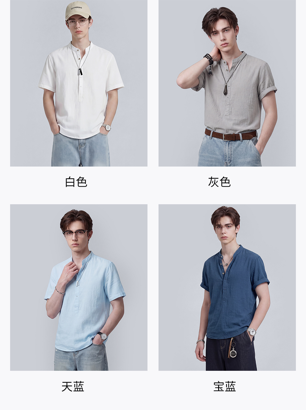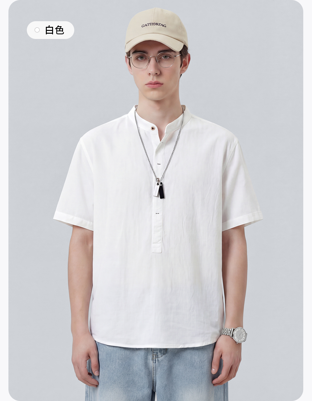 【含棉】圣得西男士短袖衬衫2026新款春季休闲风薄款透气T恤上衣