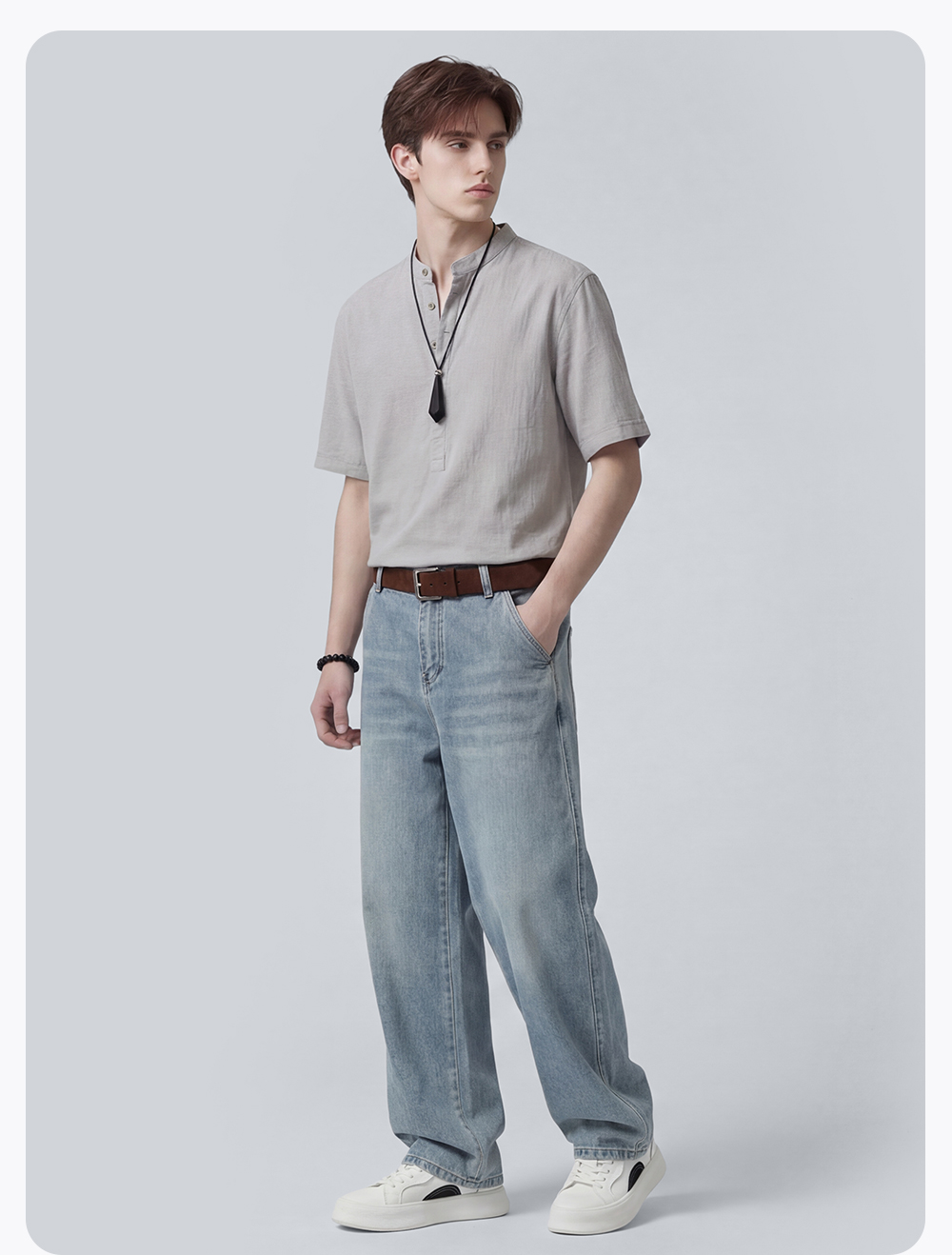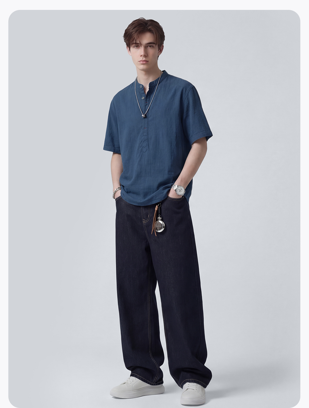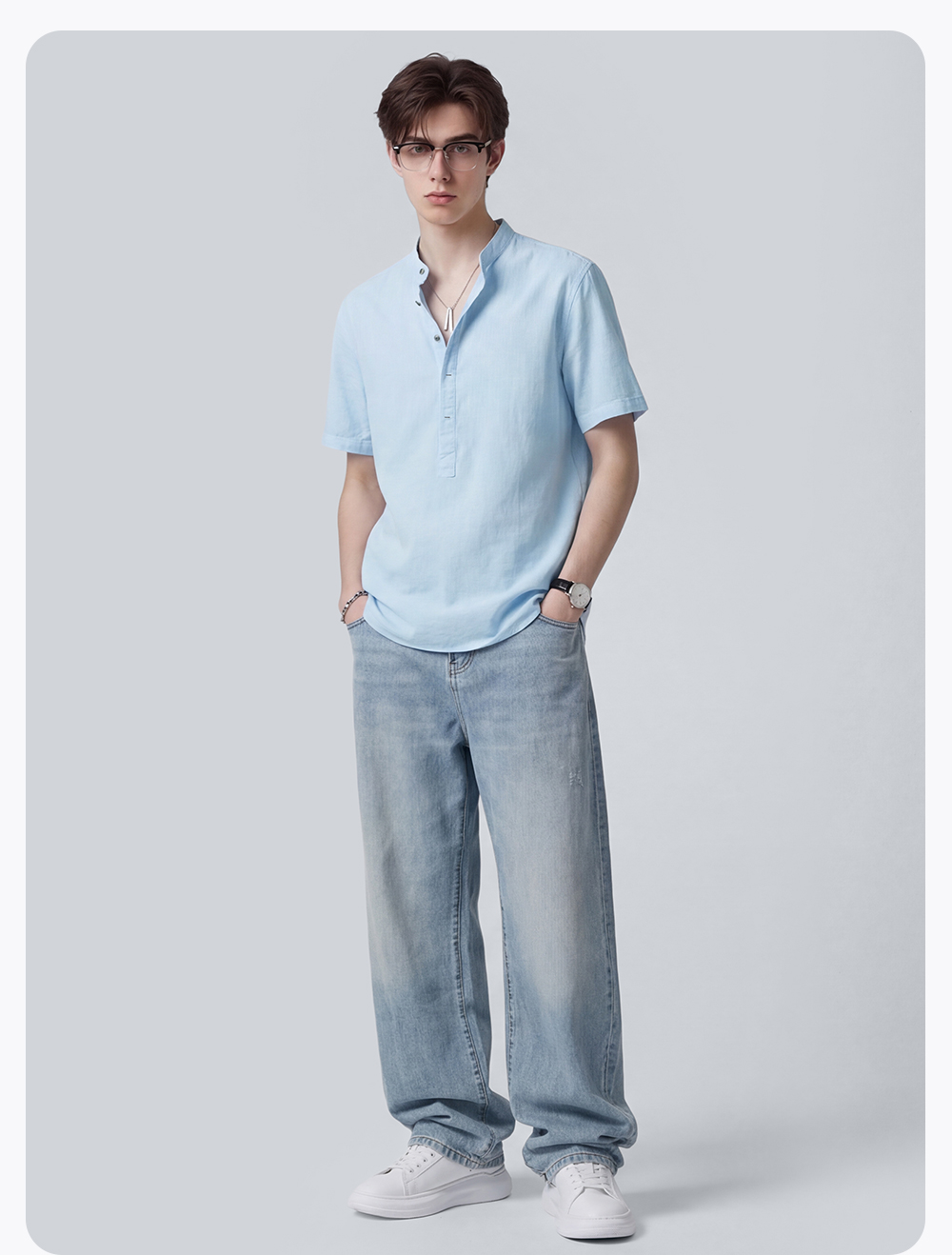 【含棉】圣得西男士短袖衬衫2026新款春季休闲风薄款透气T恤上衣