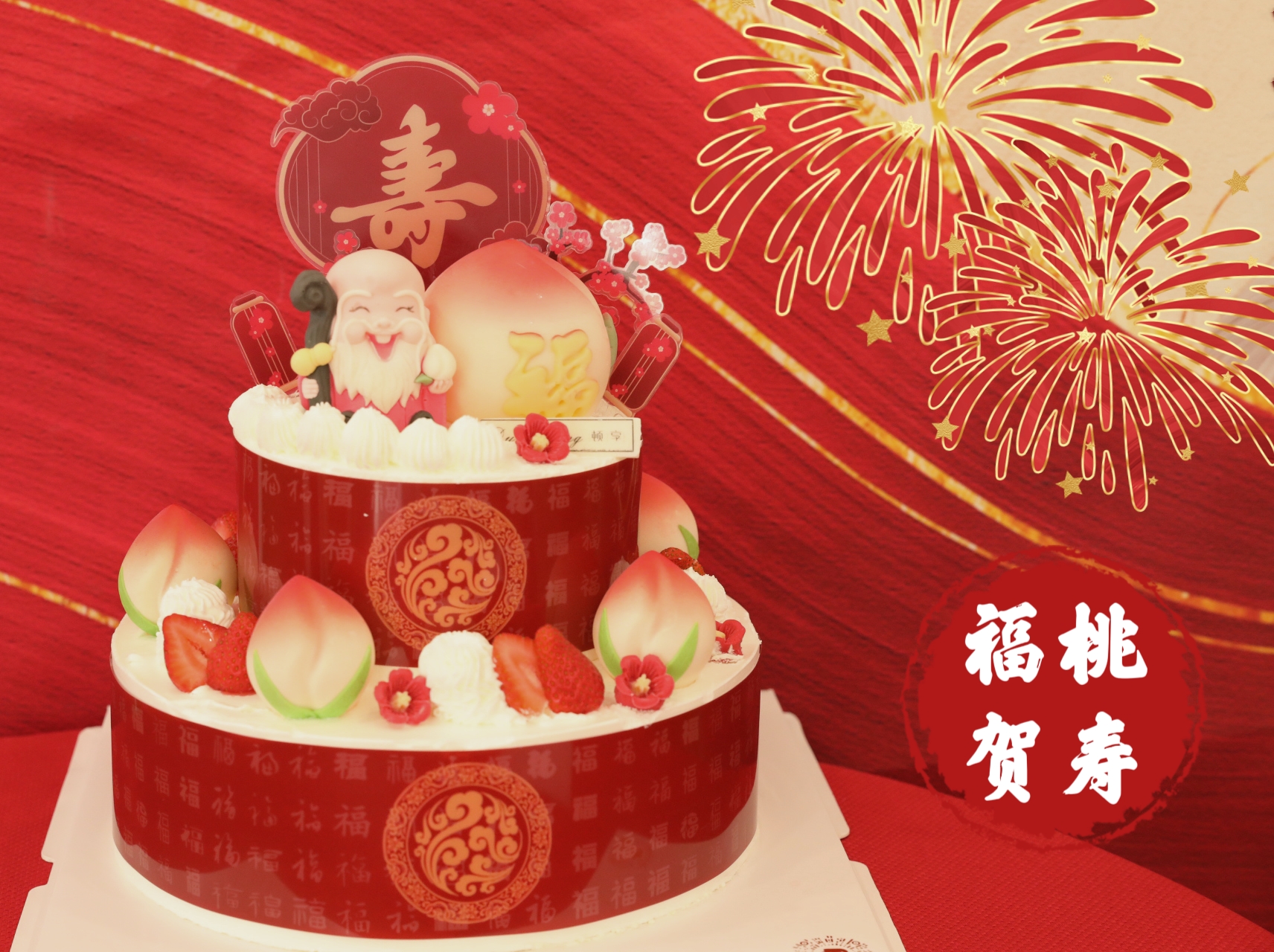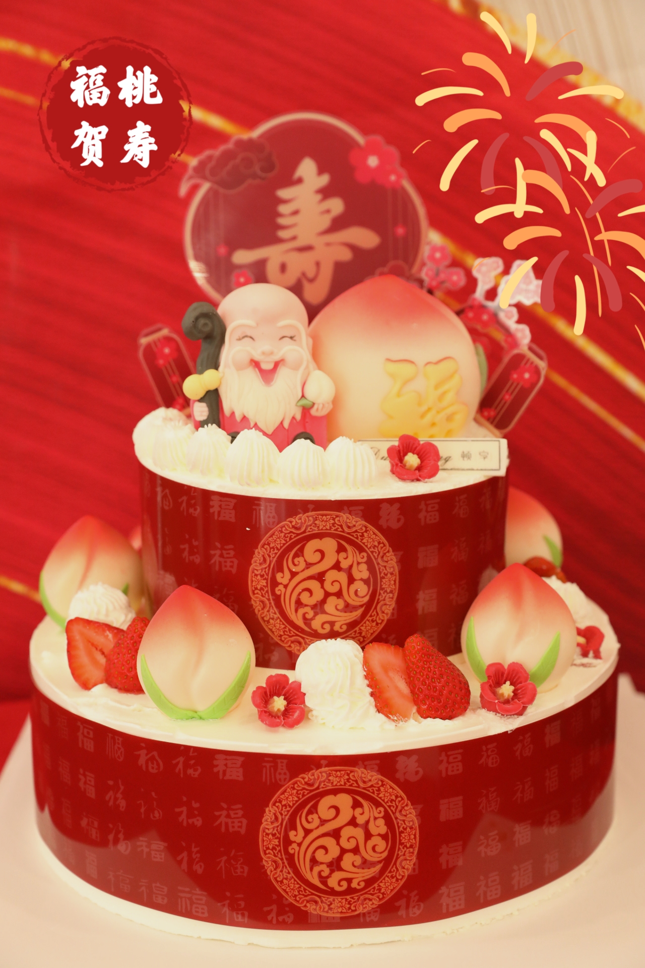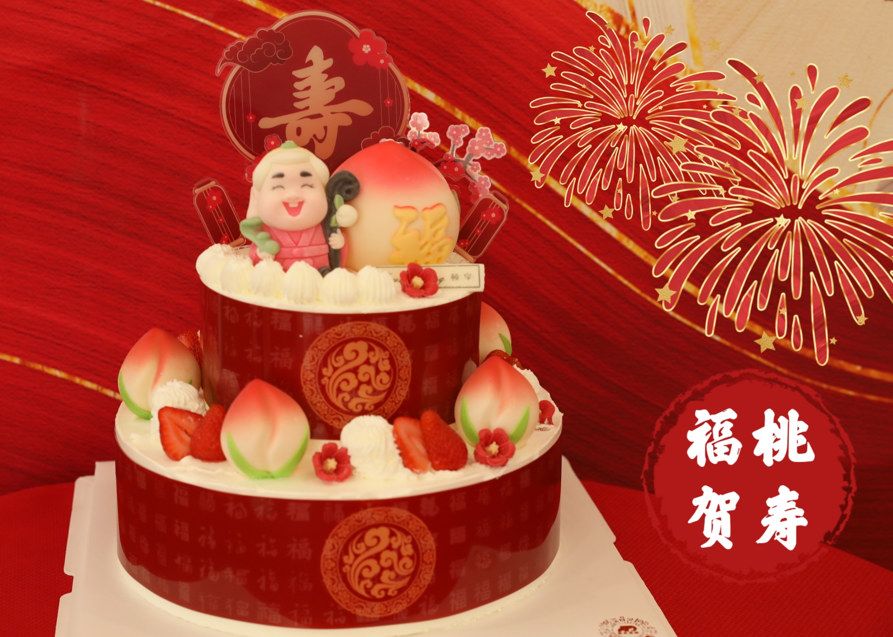 「福星祝寿」双层福桃贺寿
