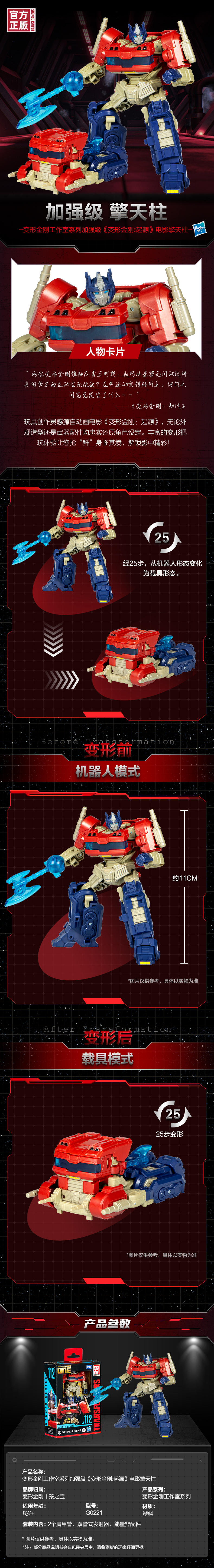 孩之宝 Hasbro 《变形金刚:起源》电影版加强级擎天柱HASCG0221XC00