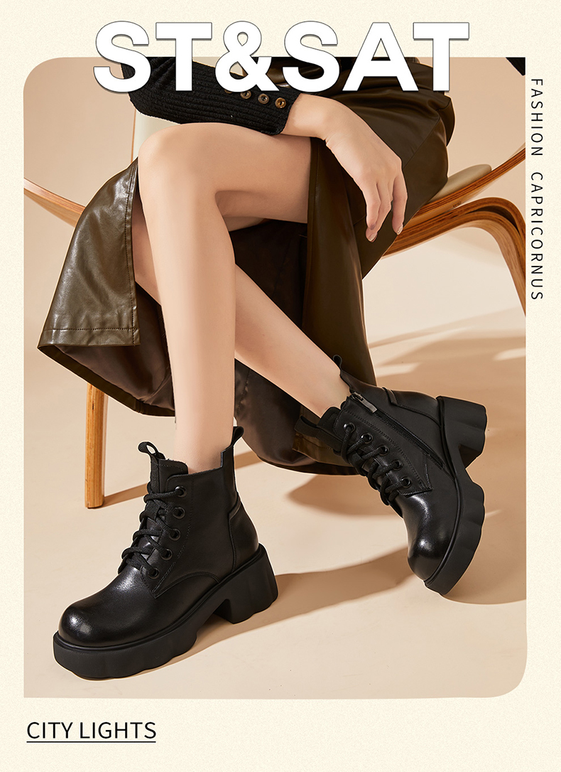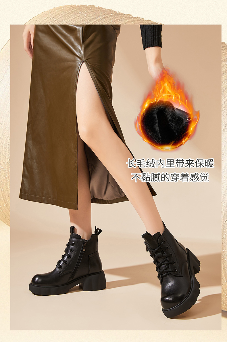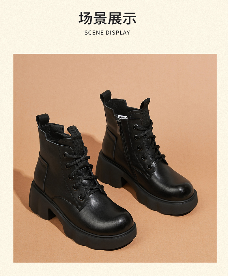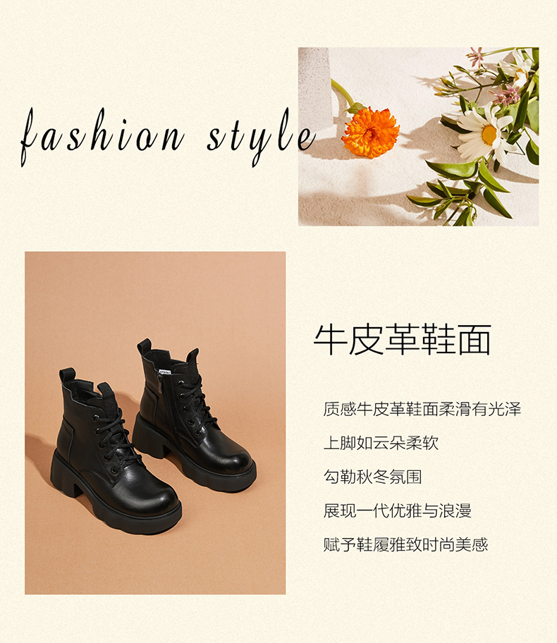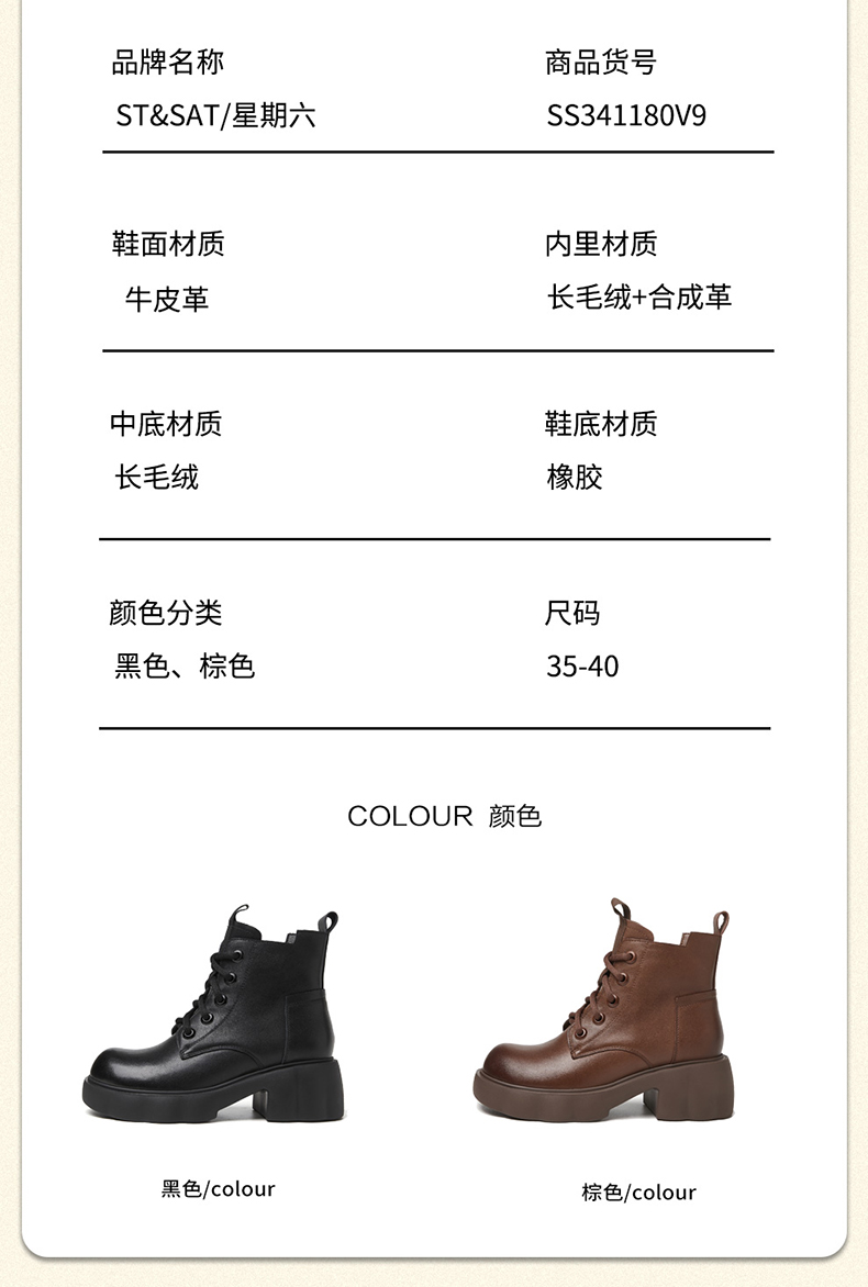 星期六时尚百搭保暖绒里厚底粗跟马丁靴SS341180V9