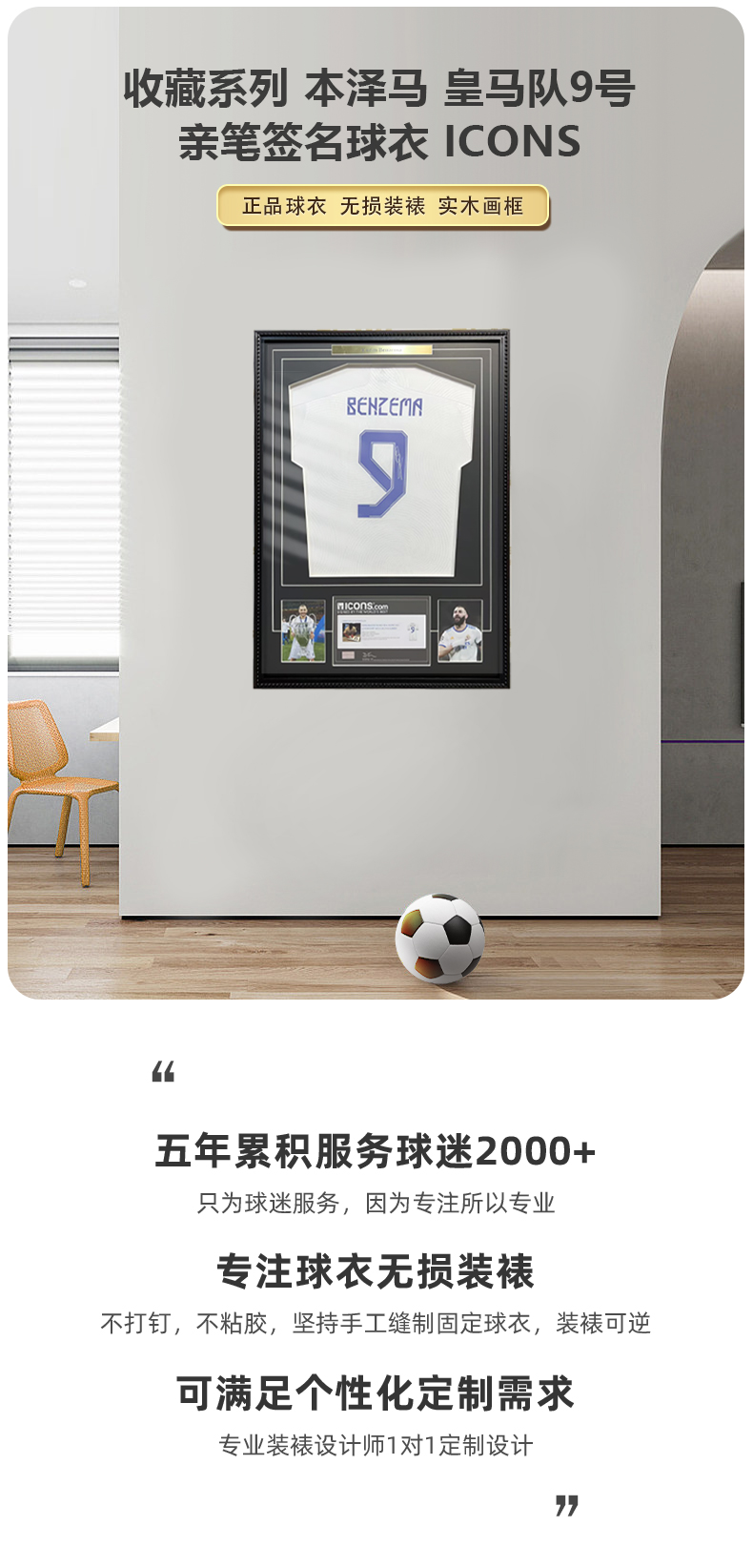 收藏系列 本泽马 皇马队9号 亲笔签名球衣 ICONS