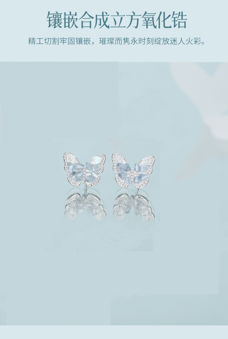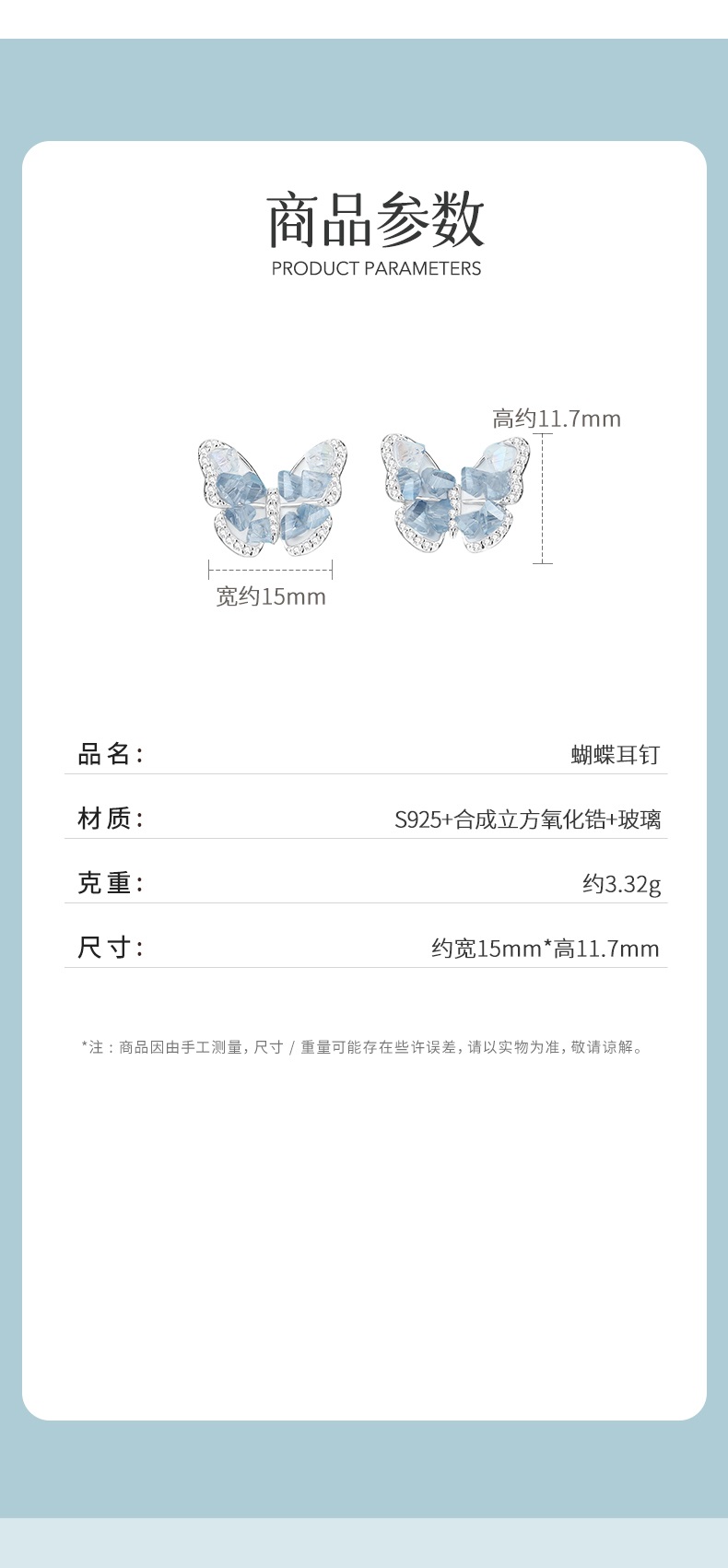 卡蒂罗KADER 蝴蝶耳钉 梦幻轻奢精致碎冰蝴蝶耳饰简约小众百搭 甜美俏皮蝴蝶小清新#好运