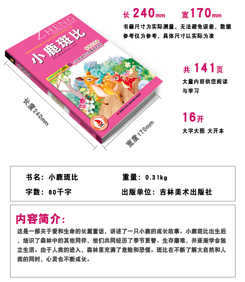 小鹿斑比(彩图注音版) 6-7-8-9岁儿童课外书小学生一年级读二年三年级课外读物书籍班主任推荐正版小学新课程正能量阅读书系-