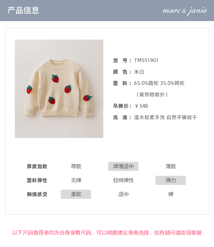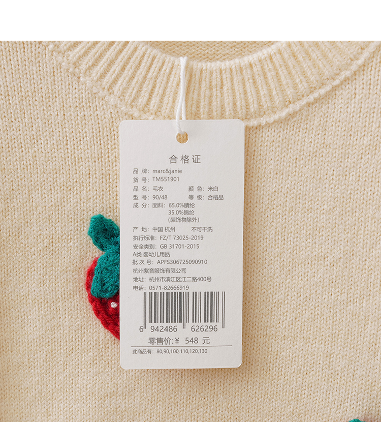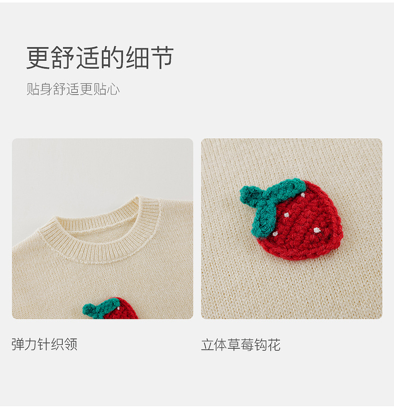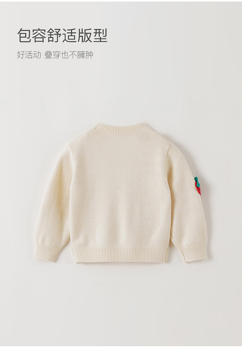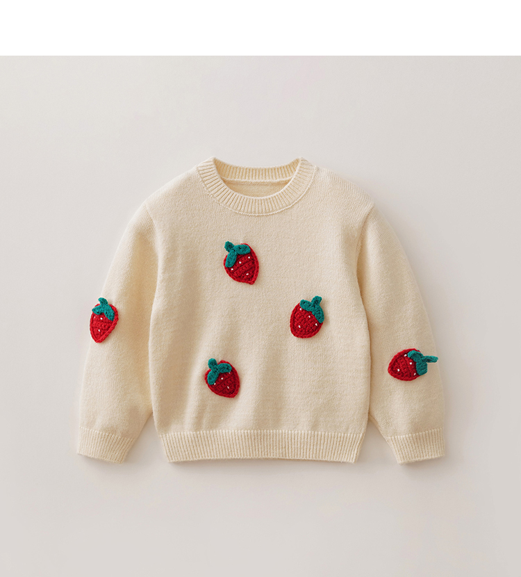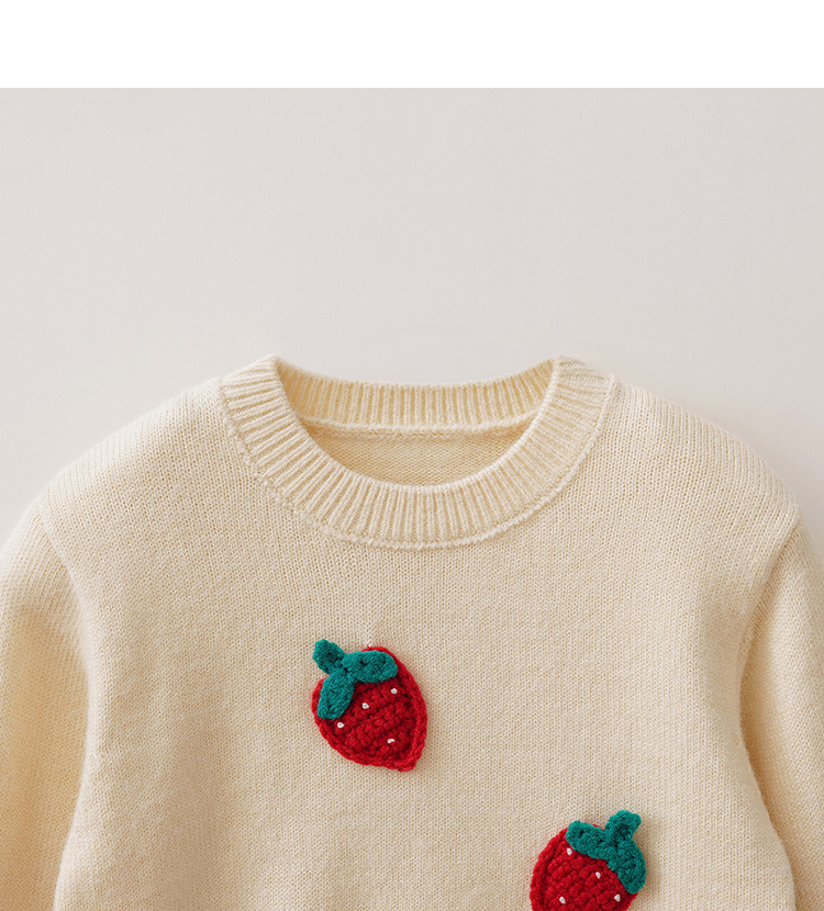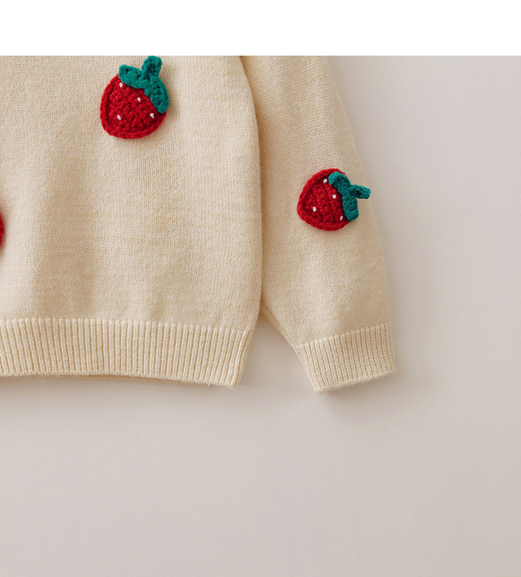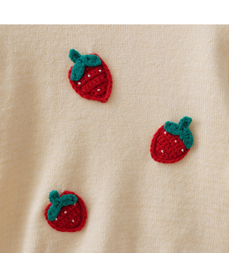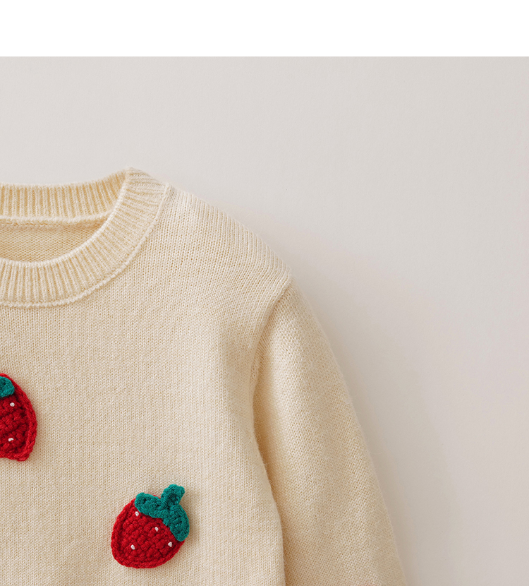 马克珍妮女童甜趣草莓绞花针织衫2025年秋冬新款551901